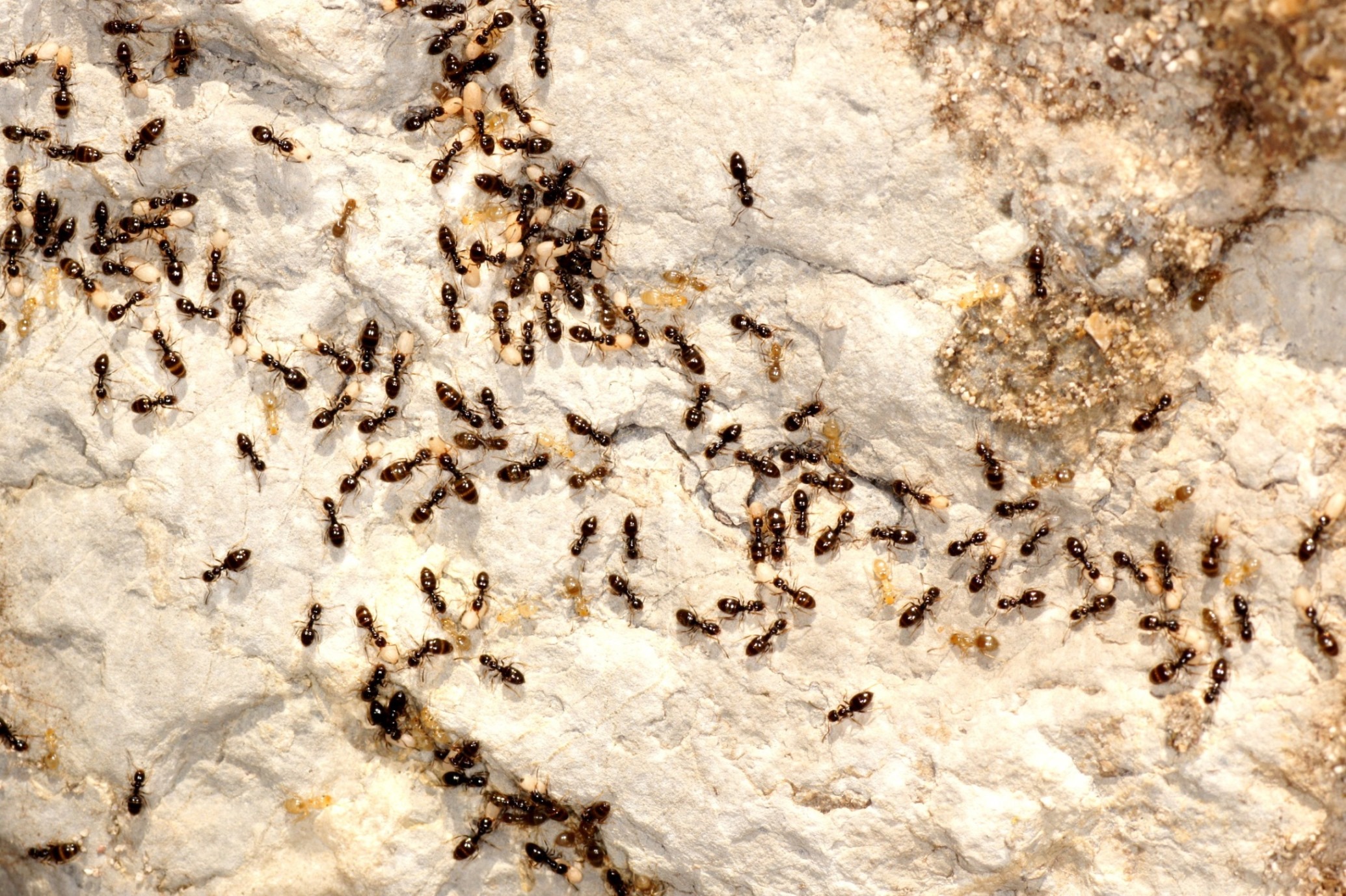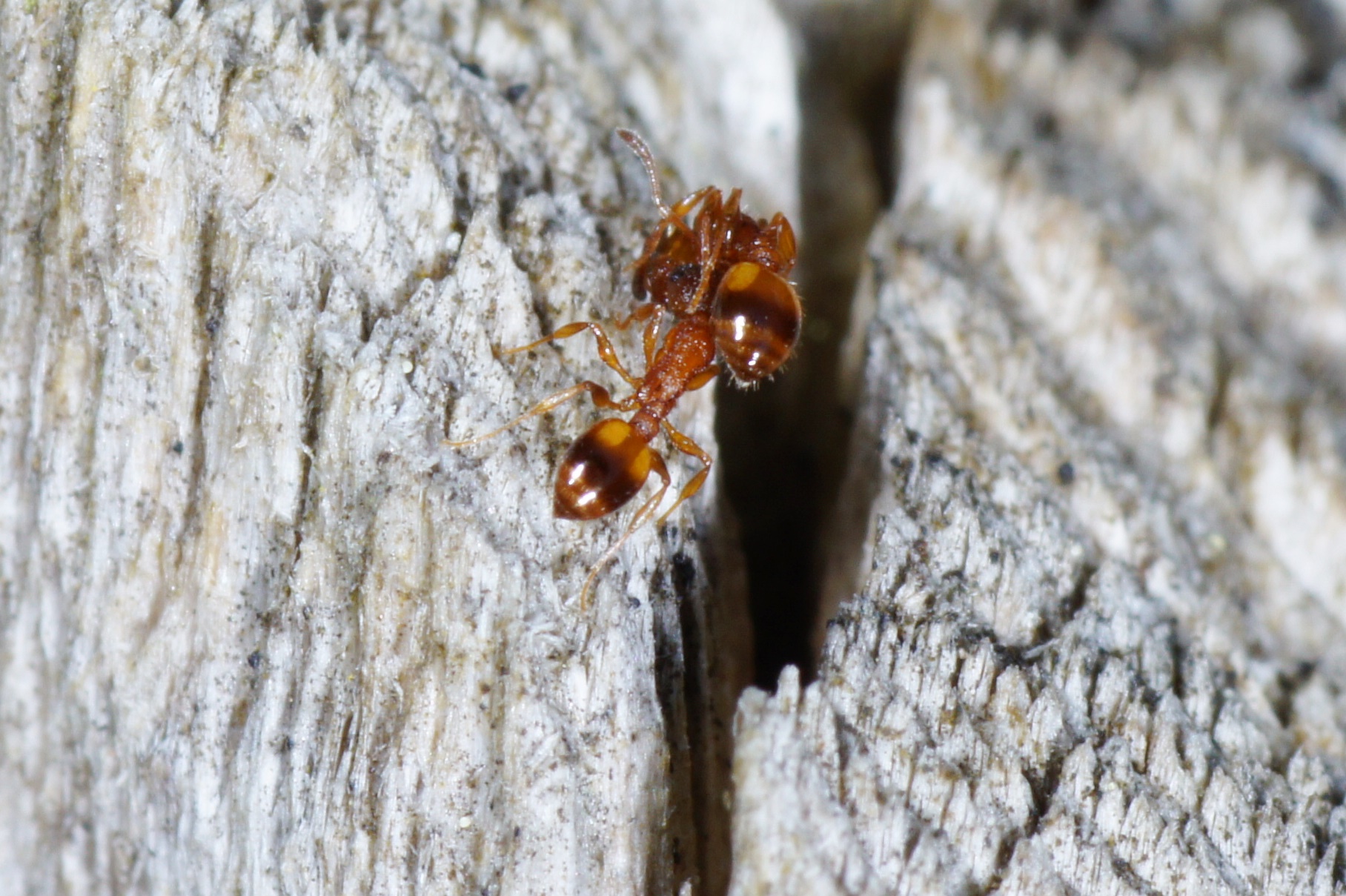 4. Beim Ablösen der Rinde bei einem Holzstrunk entdeckten wir ein Nest von Tetramorium