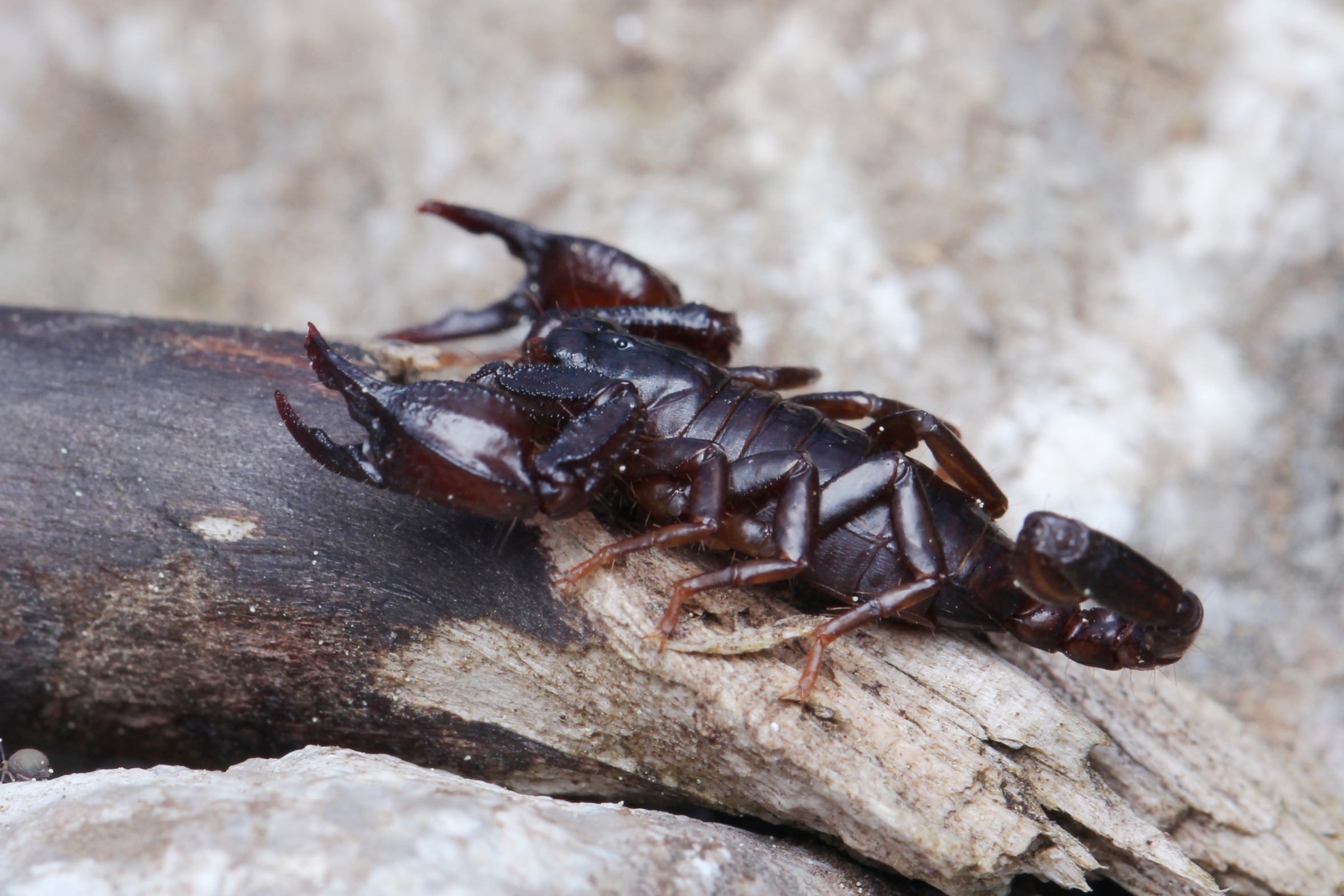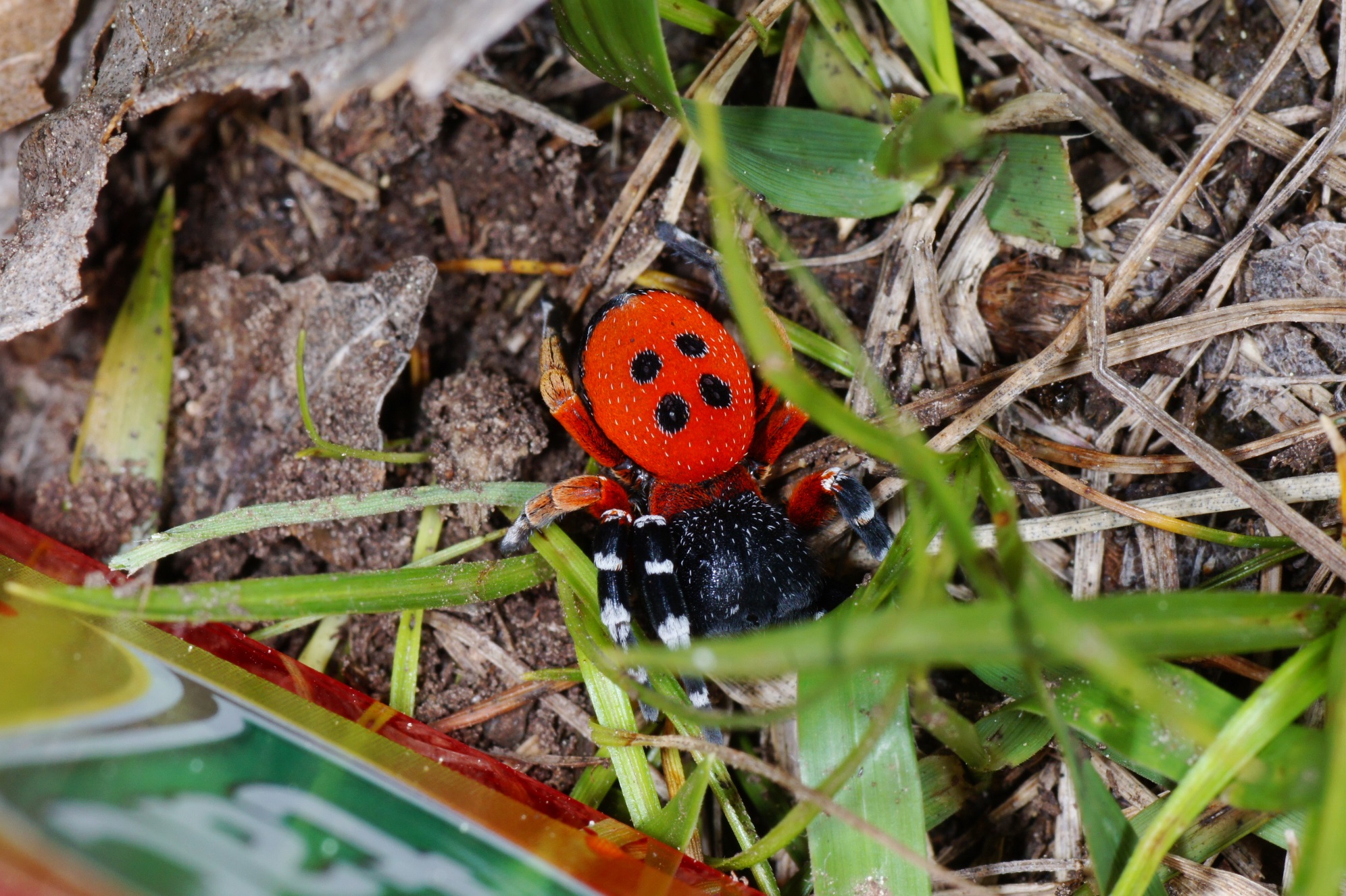 8. Da haben wir etwas Besonderes: Die Rote Röhrenspinne, wovon wir immerhin 3 Tiere zu Gesicht bekamen. Das Mitnehmen kam nicht in Frage, die Art steht sicher auf der Roten Liste. Schwer zu fotografieren, mit einer Tic-Tac-Box mussten wir sie vor dem Verschwinden abhalten:
