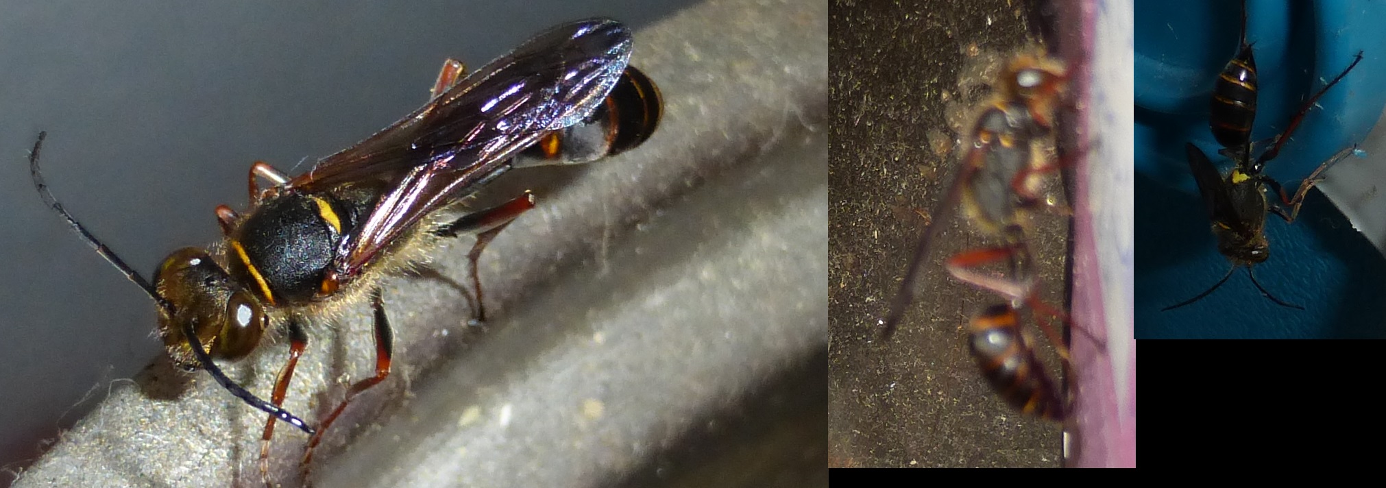 Dieses hĂĽbsche Insekt hat in meiner KĂĽche ĂĽberwintert, kann mir jemand sagen um was es sich handelt? WĂĽrde auf eine Grab- oder Erdwespe tippen.