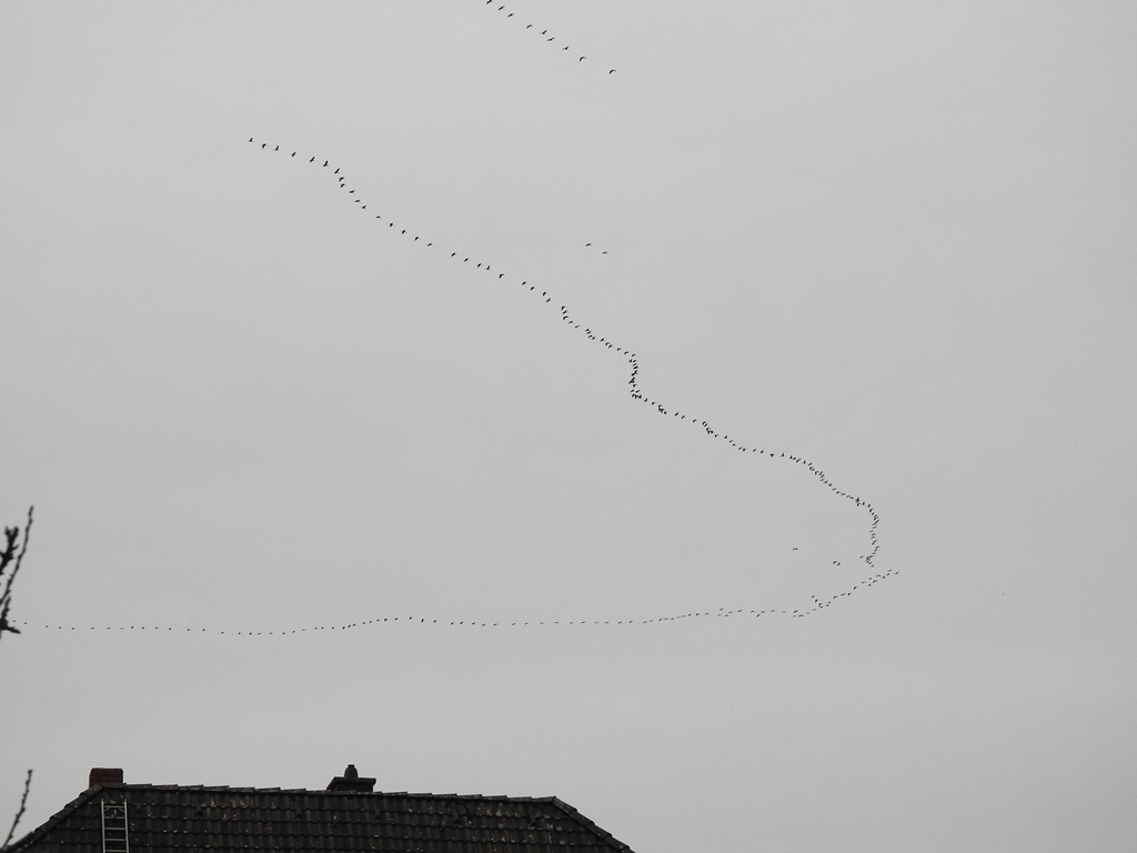 Heute schien mir großer Kranich Wandertag zu sein. Den ganzen Nachmittag über könnte ich immer wieder Schwärme von Kranichen beobachten die übers Land zogen.