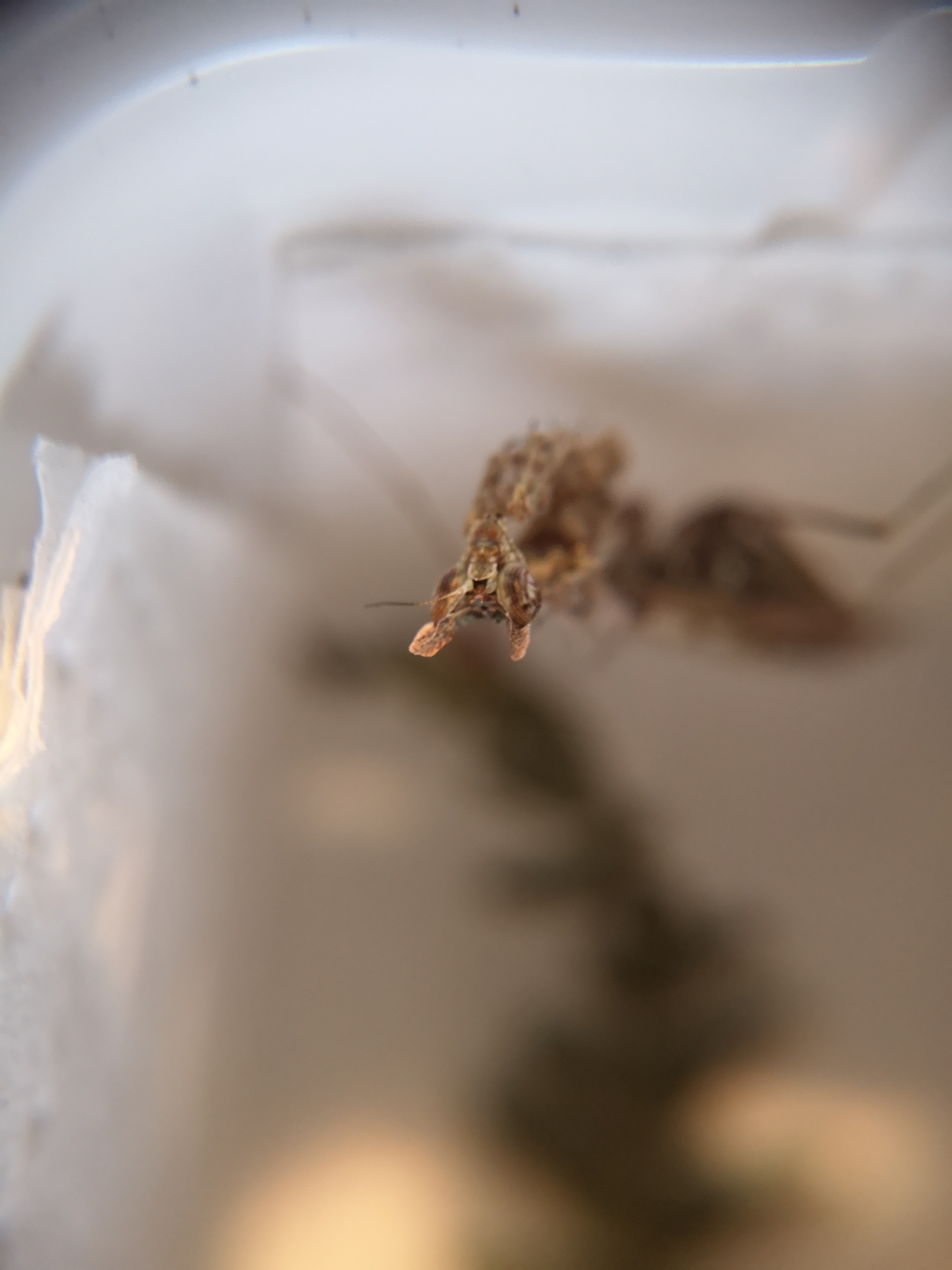 Mitgebracht habe ich unter anderem Moosmantiden der Art Haania orlovi. Ein Männchen, ein Weibchen.