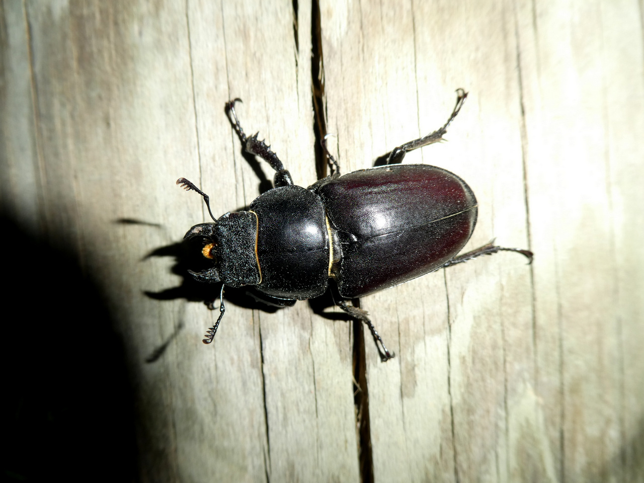 Auch ohne Geweih ein ziemlich mächtiger Käfer; ein weiblicher Hirschkäfer: