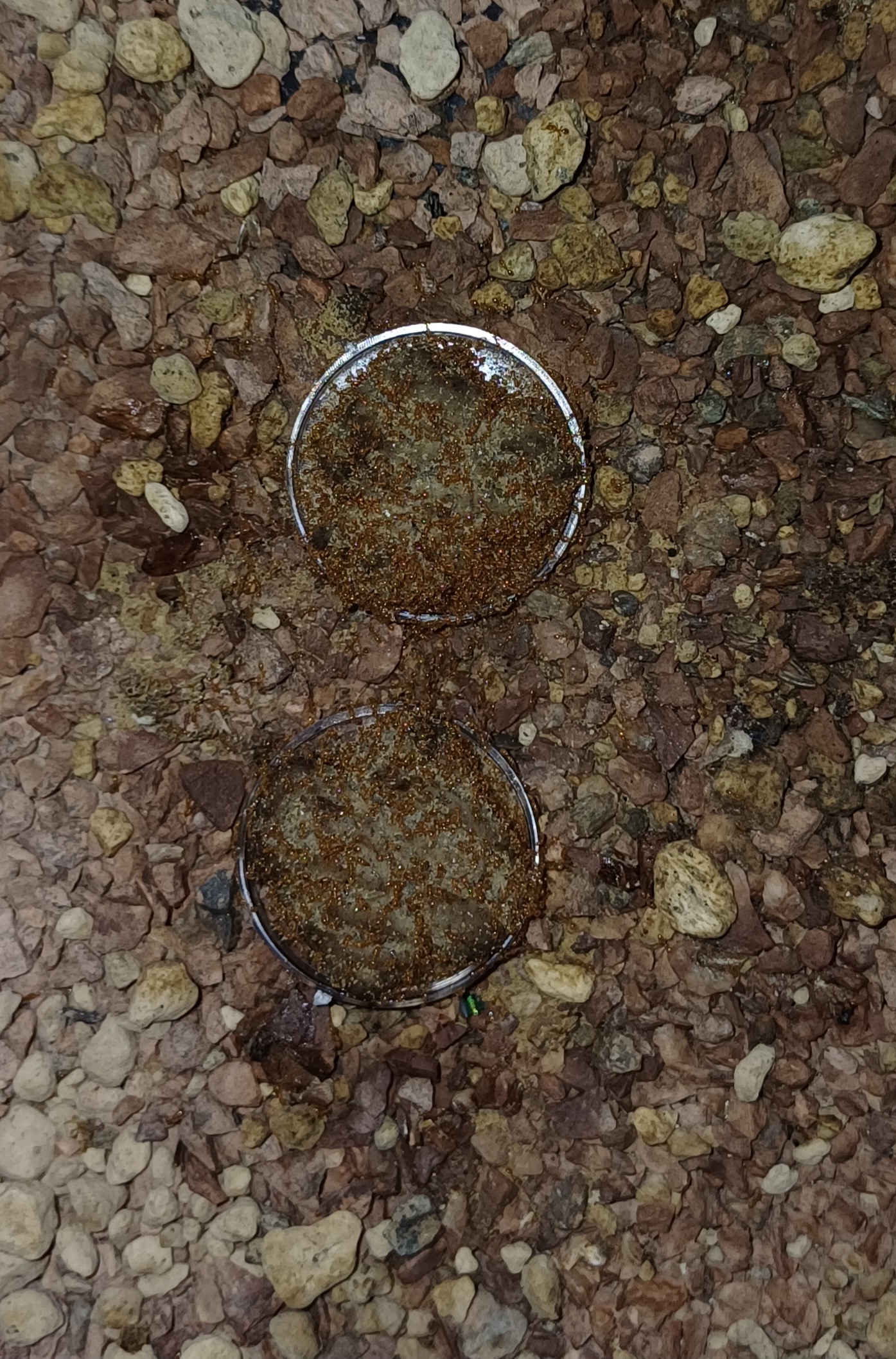 Ein leider unscharfes Foto, aber der Kenner sieht was hier los ist. Mit groĂźer Begeisterung wird dieses Insektenmus gefressen. Ich verwende diese Alternative schon rund vier Wochen und sehe bisher keinen Einbruch in der Brutentwicklung, egal bei welcher Art. Sicher, vier Wochen sind gar nix zwecks Beurteilung, doch wird es selbst bei GrĂĽnderkolonien deutlich mehr bevorzugt als gefrorene, halbierte Heimchen.