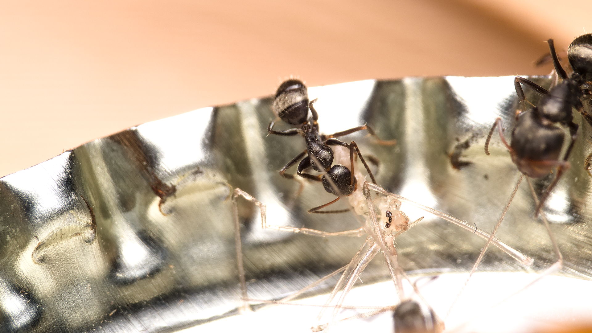 Meine Camponotus brevis Kolonie lässt sich die Zitterspinne schmecken.