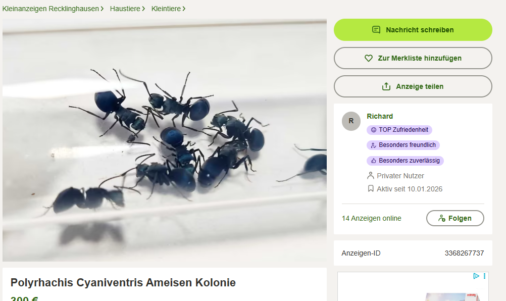 Ich habe meine Harpegnathos venator aus meine HB auch bei ihm gekauft... War alles top =)*202 , er hat mir jedoch ein Heatpack versprochen, welches leider nicht dabei war.