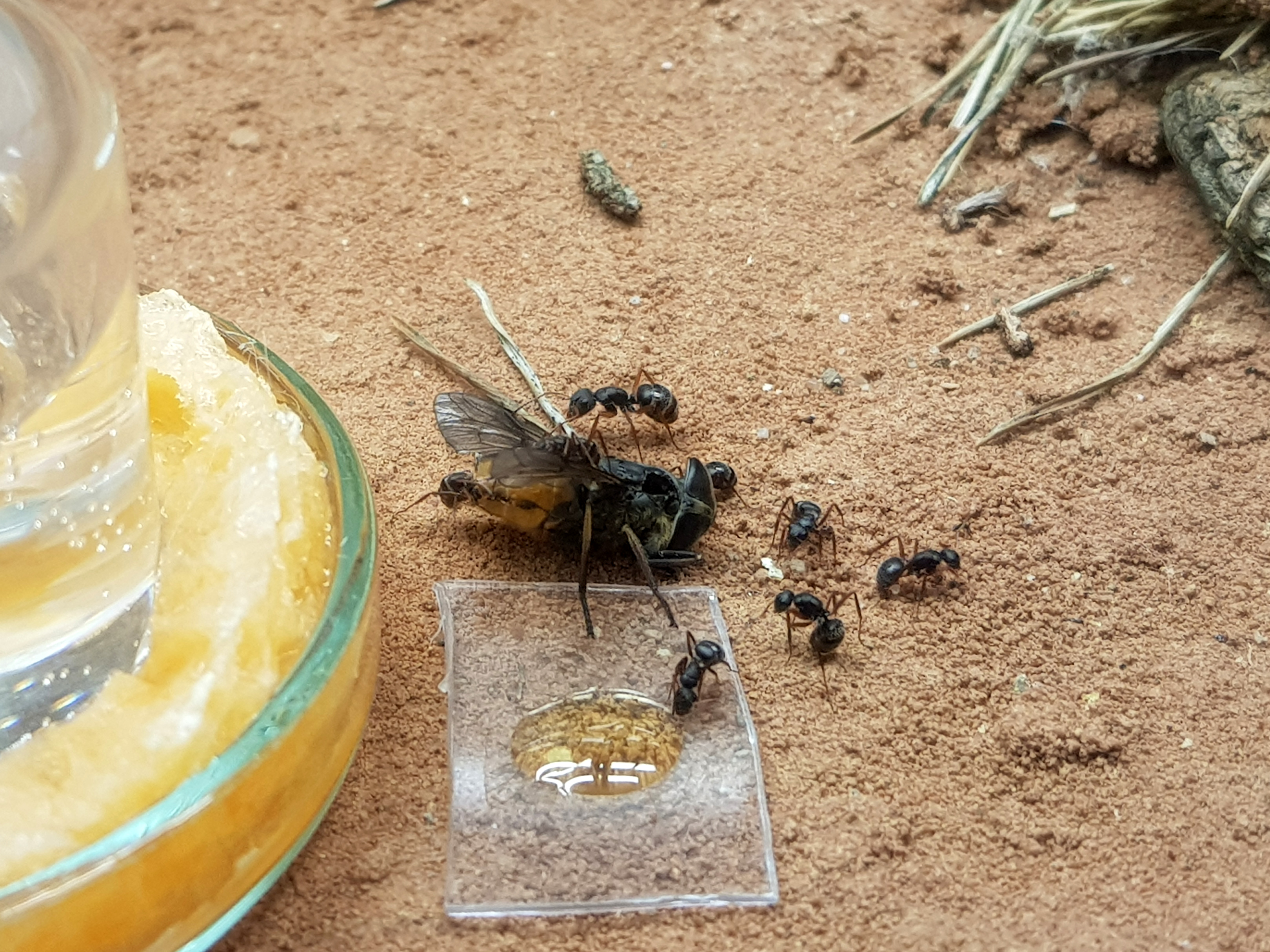 Hier eine Arbeiterin auf dem Weg zum Wasser: Am späten Nachmittag brachte dann überraschend mein Vater eineGyne , eingewickelt in ein Taschentuch, mit vom Spaziergang. Nicht das erste Mal, bisher ist es mir selbst noch nicht gelungen, eine Gyne der Art zu finden. Auch die erste Königin , die ich seit 2018 habe, wurde mir mitgebracht