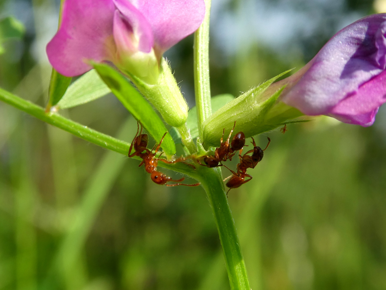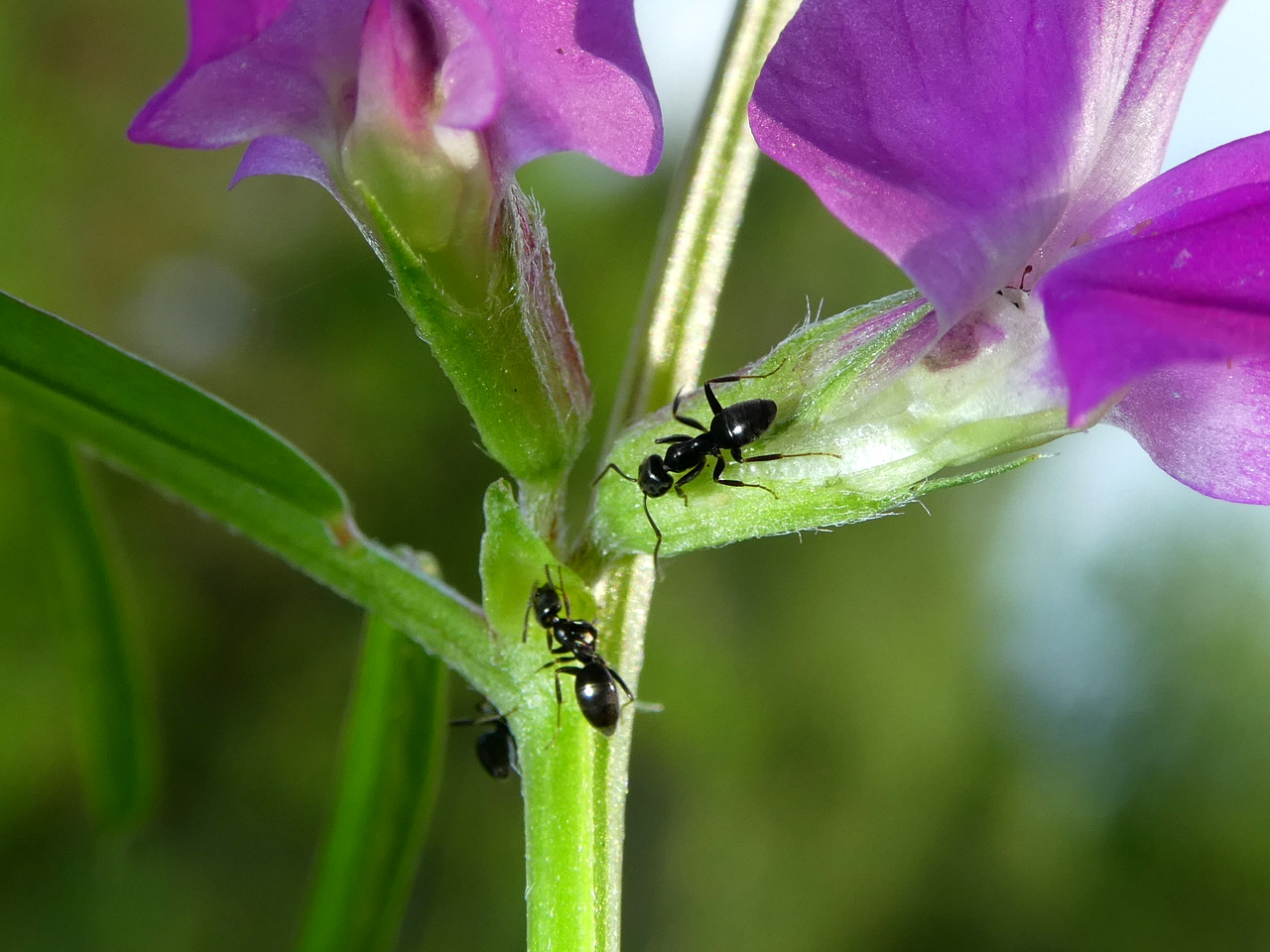 Als ich gestern diese Ameisen beim Naschen an den Nektarien von Zaun-Wicken fotografiert habe, dachte ich noch, dass ich eine groĂźe