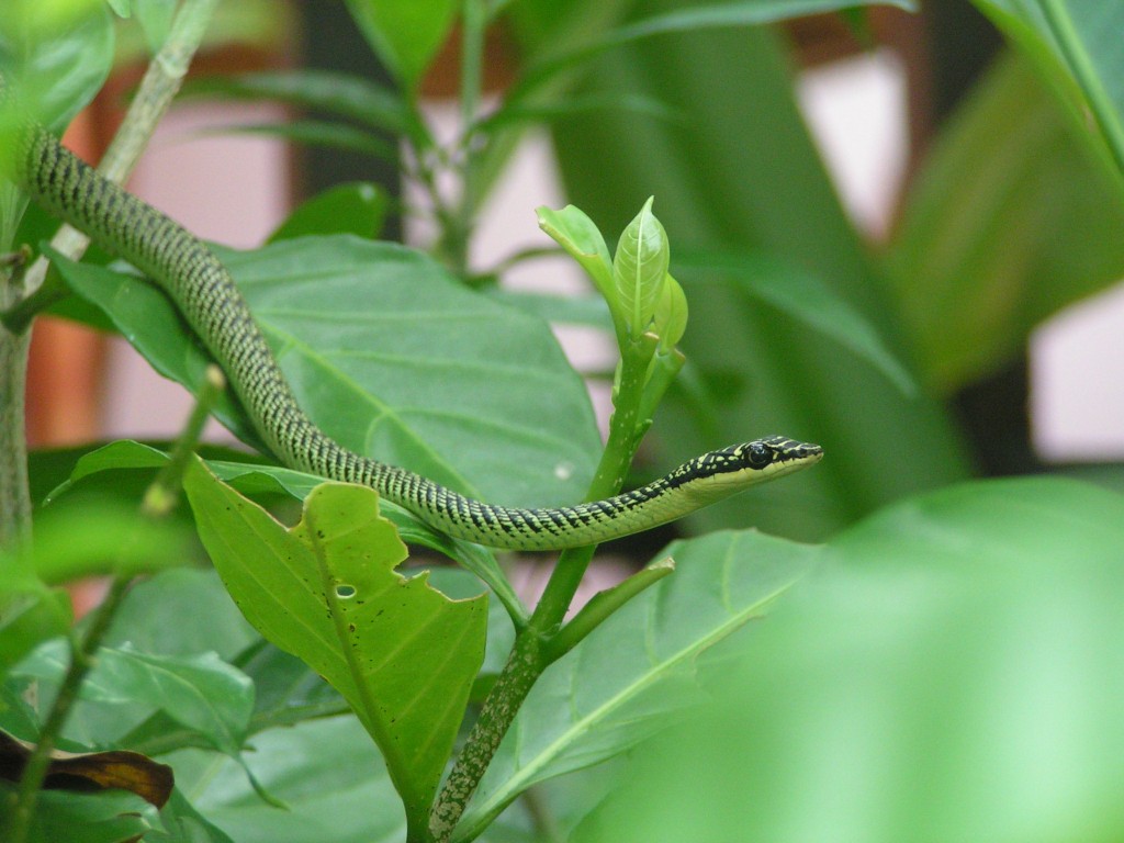 (Kenne mich mit Schlangen leider nicht aus, vermute aber, dass es sich um eine Schmuckbaumnatter handelt)