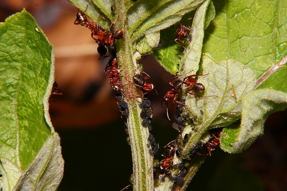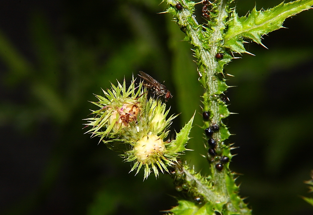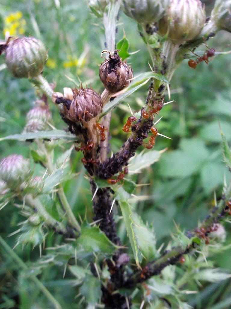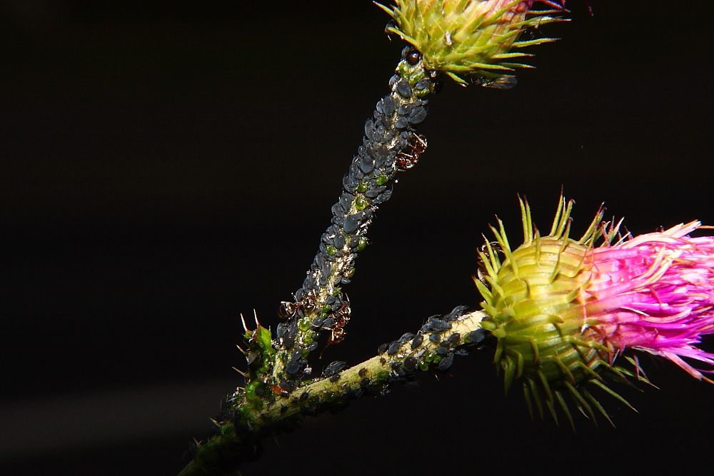Ich war heute ĂŒber drei Stunden in den umliegenden WĂ€lder unterwegs. FrĂŒher verbrachte ich viel Zeit dort, wollte quasi meine Ortskundigkeit auffrischen, es hat sich einiges getan, kein Wunder. Die "alten" groĂen Kolonien von damals konnte ich heute somit nicht ausfindig machen, eher aber verdĂ€chtige AushĂŒbe usw. entdecken. Leider hat es heute immer geregnet, viele Ameisen waren nicht aktiv. Und da ich leider nur mit meinem 0815 Handy ausgerĂŒstet war, tut es mir jetzt schon um die schlechte QualitĂ€t leid! Allerdings möchte ich eine von vielen Beobachtungen (Myrmica sp . mit Blattlauskolonie) mit euch teilen. AuĂerdem fand ich eine schöne FlĂ€che blĂŒhender Distel die trotz KĂ€lte, ganz klar