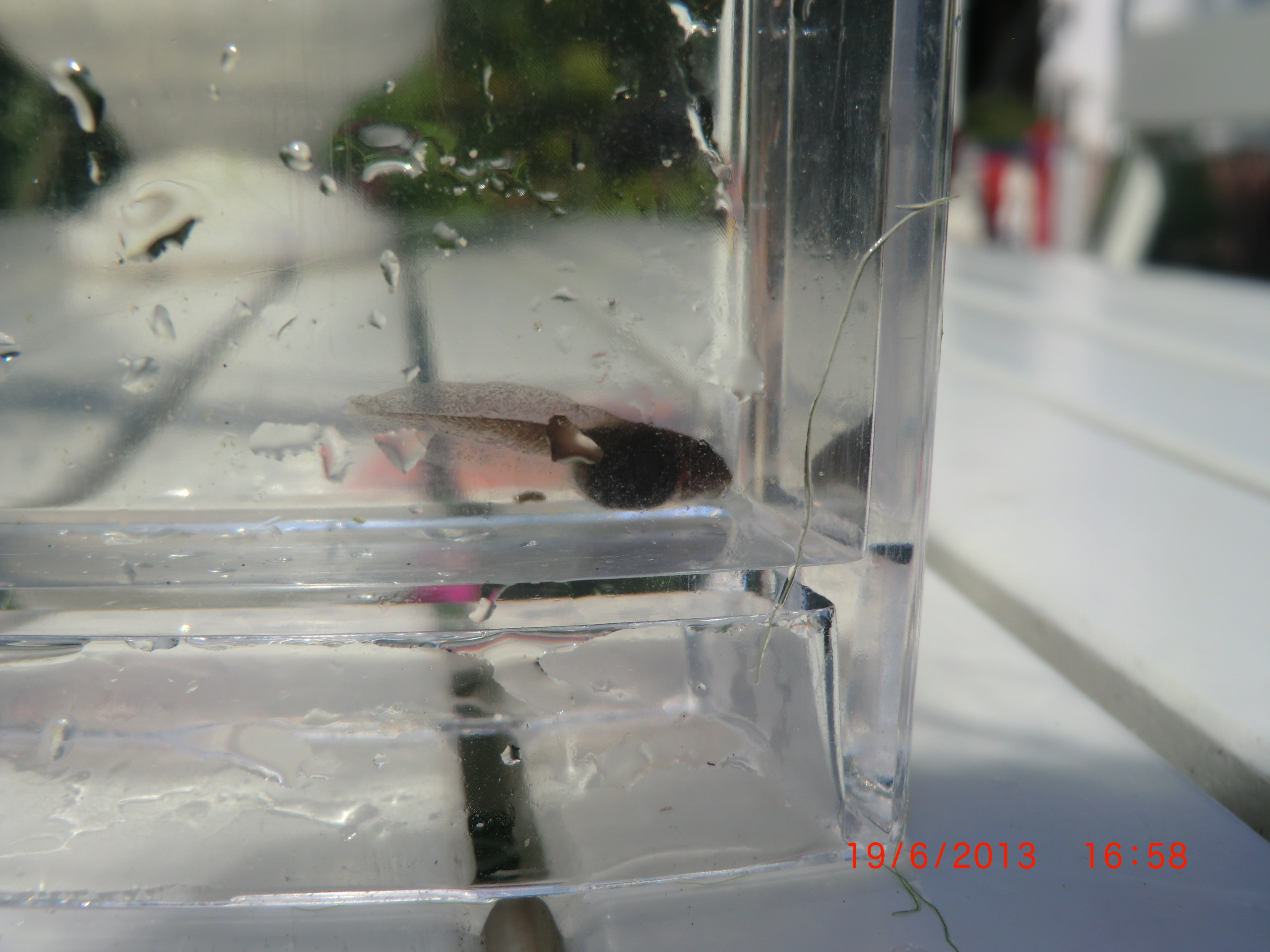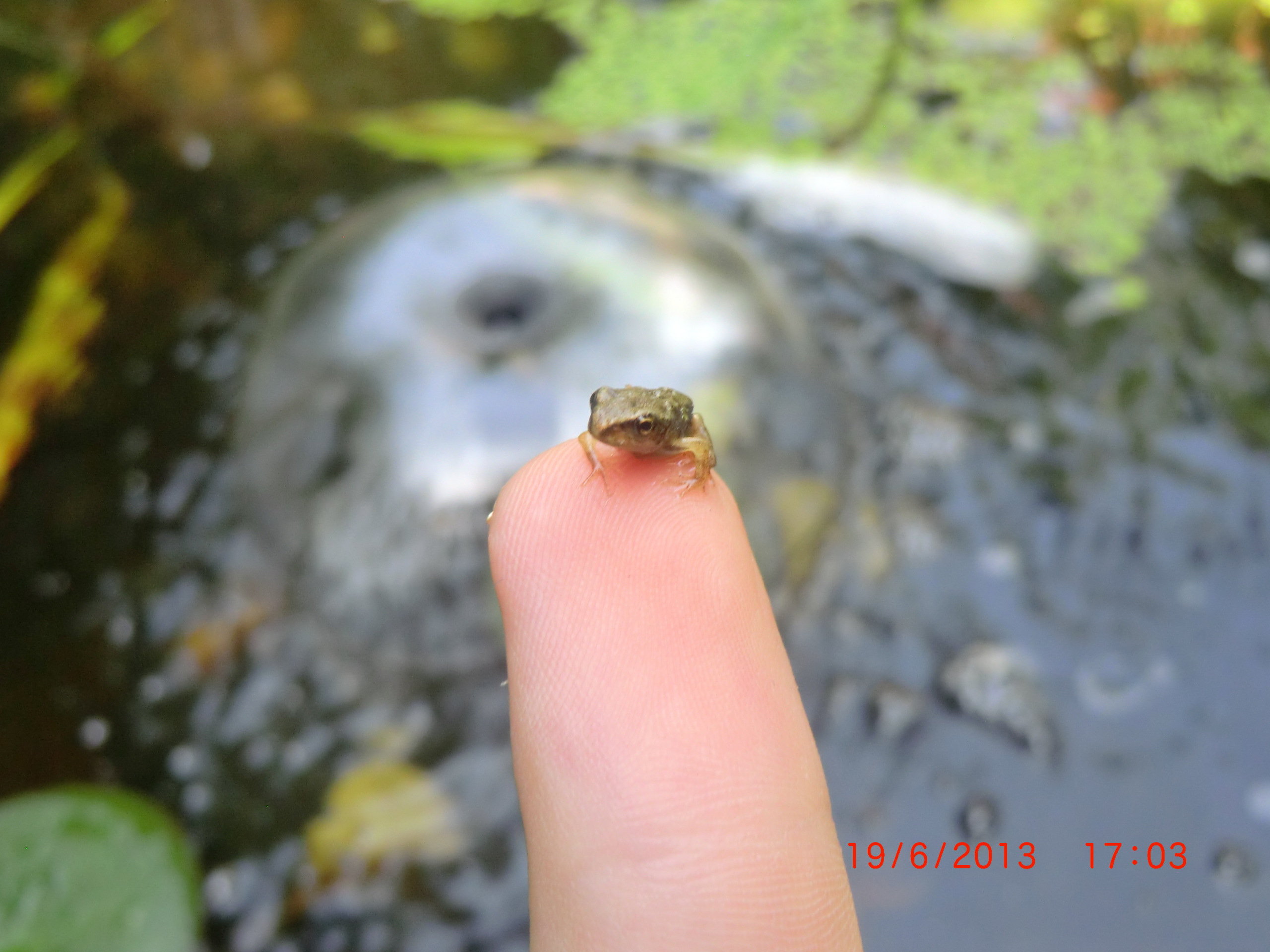 Die Kaulquappen sind ordentlich gewachsen. Aber als ich genauer hinsah entdeckte ich am Rand des Teiches zwei kleinen mini Frösche die sich sonnten.
