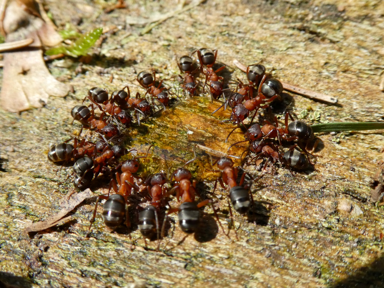 Einen Katzensprung entfernt beim Raptiformica-Nest ein ähnliches Bild; Arbeiterinnen und