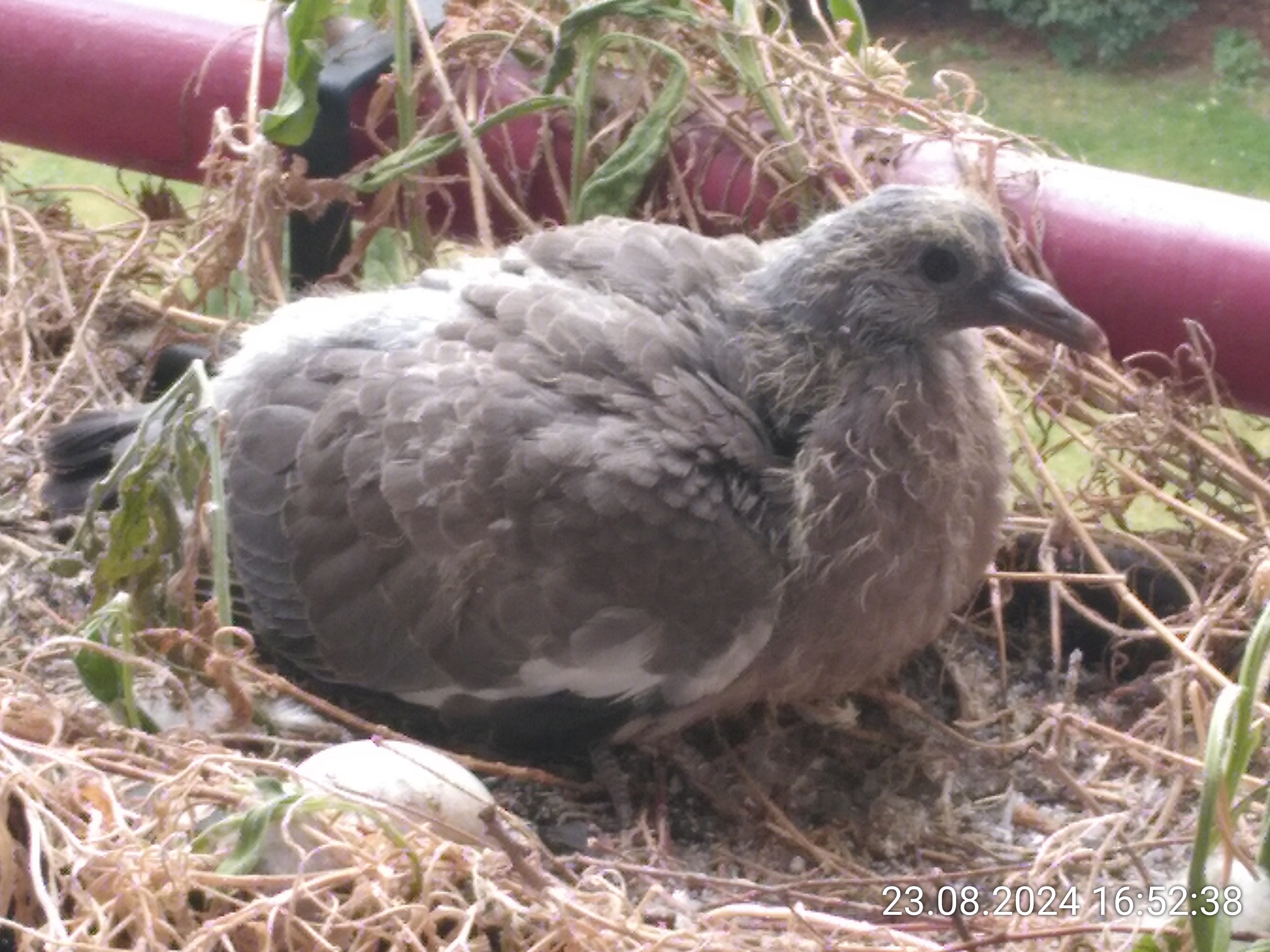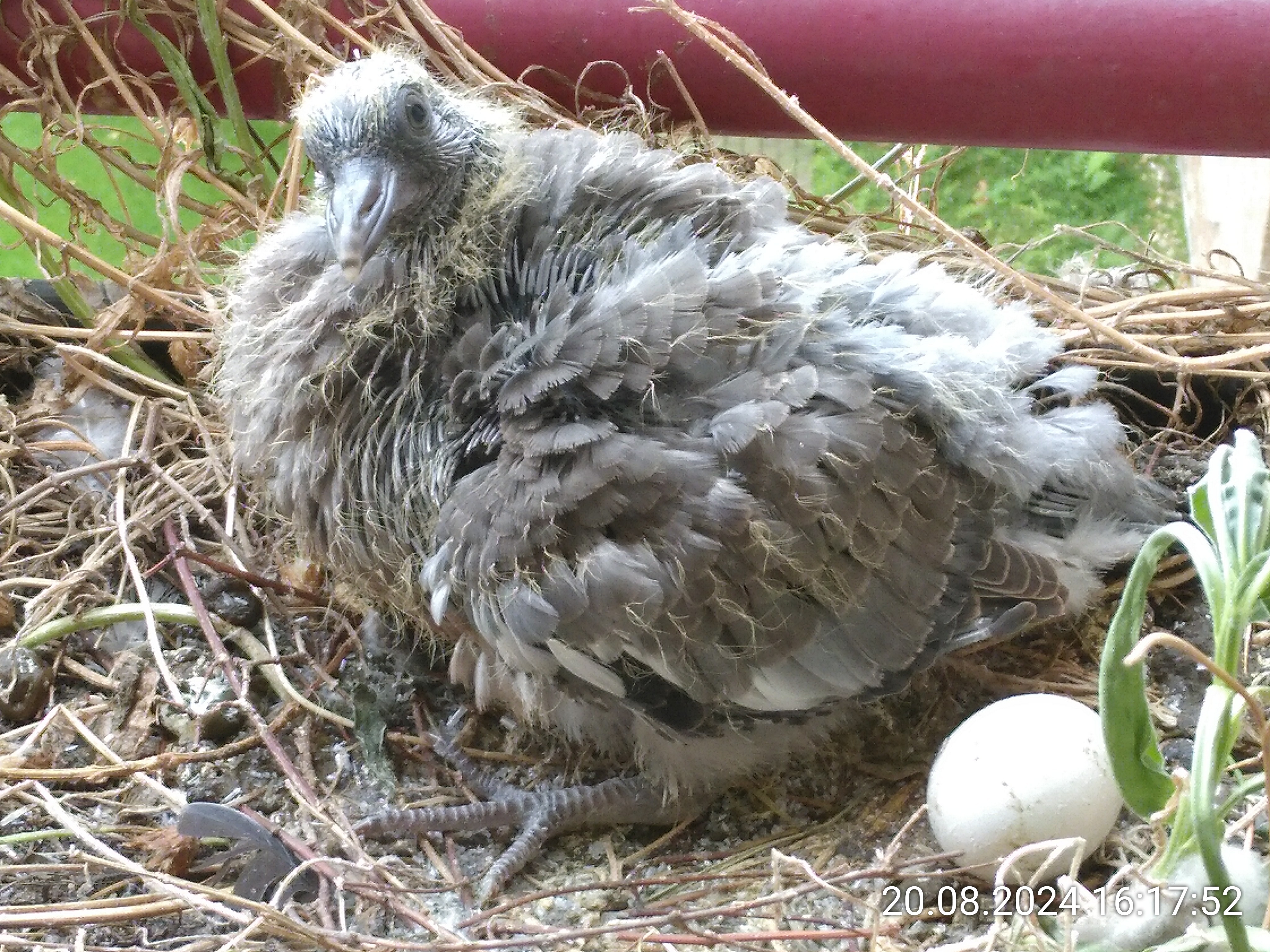 Die Entwicklung geht echt schnell. Das Kleine sieht jeden Tag anders aus. Vor einer Woche war es noch ein gelbliches stoppeliges KĂĽken und vor zwei Wochen noch im Ei. Da wĂĽrde heute nicht mal mehr der Kopf reinpassen. Zum Vergleich haben die Eltern extra ein Ei ĂĽbrig gelassen.