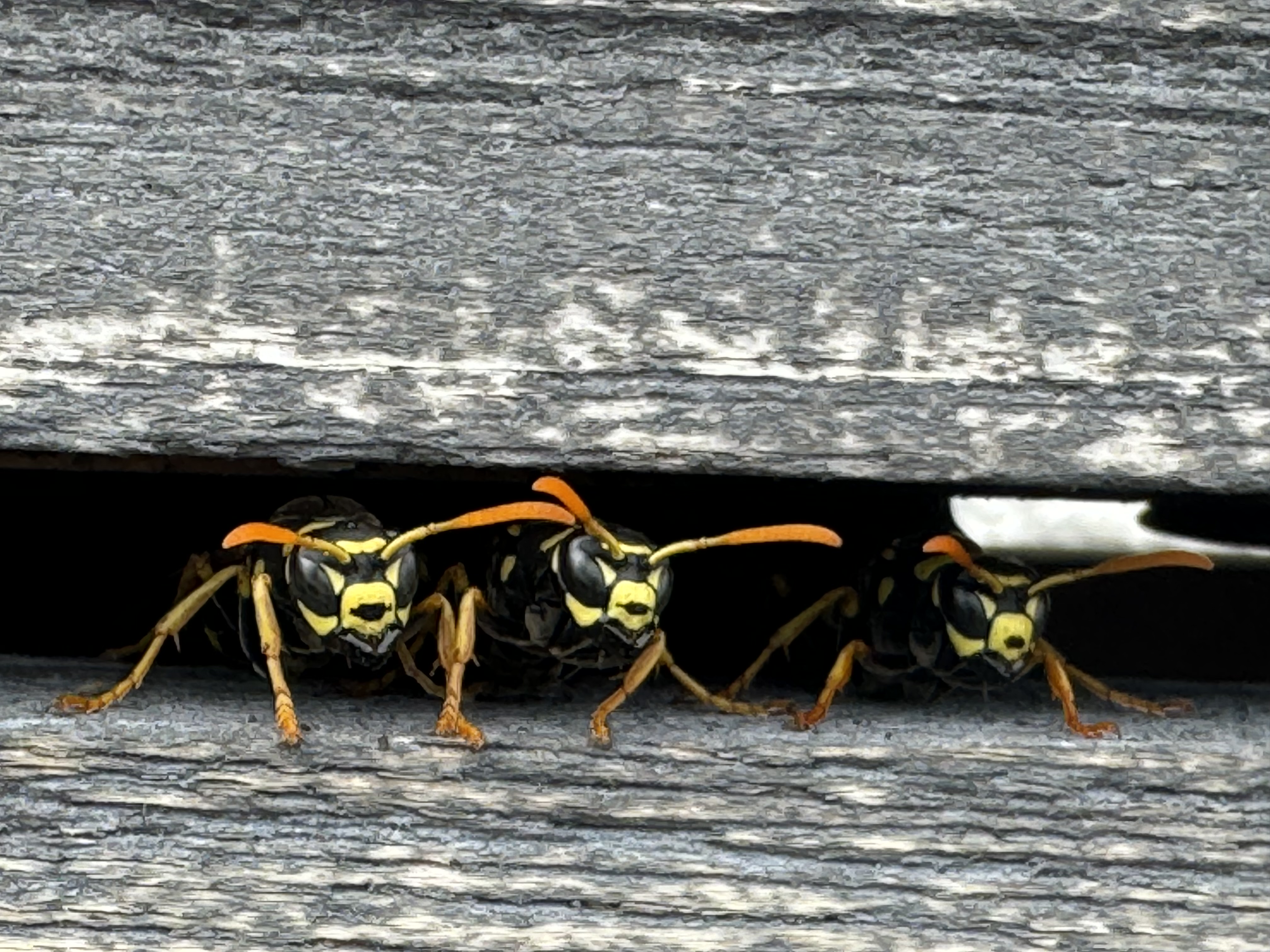 Heute Nachmittag habe ich drei Wespen in einem Holzstuhl im Garten erwischt, was die da wohl machen?