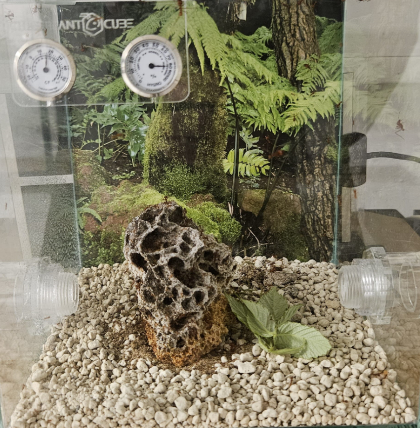 Aktuell bezieht die Kolonie ein Hybrid-Nest und ein Antcube 30x30x30cm mit
