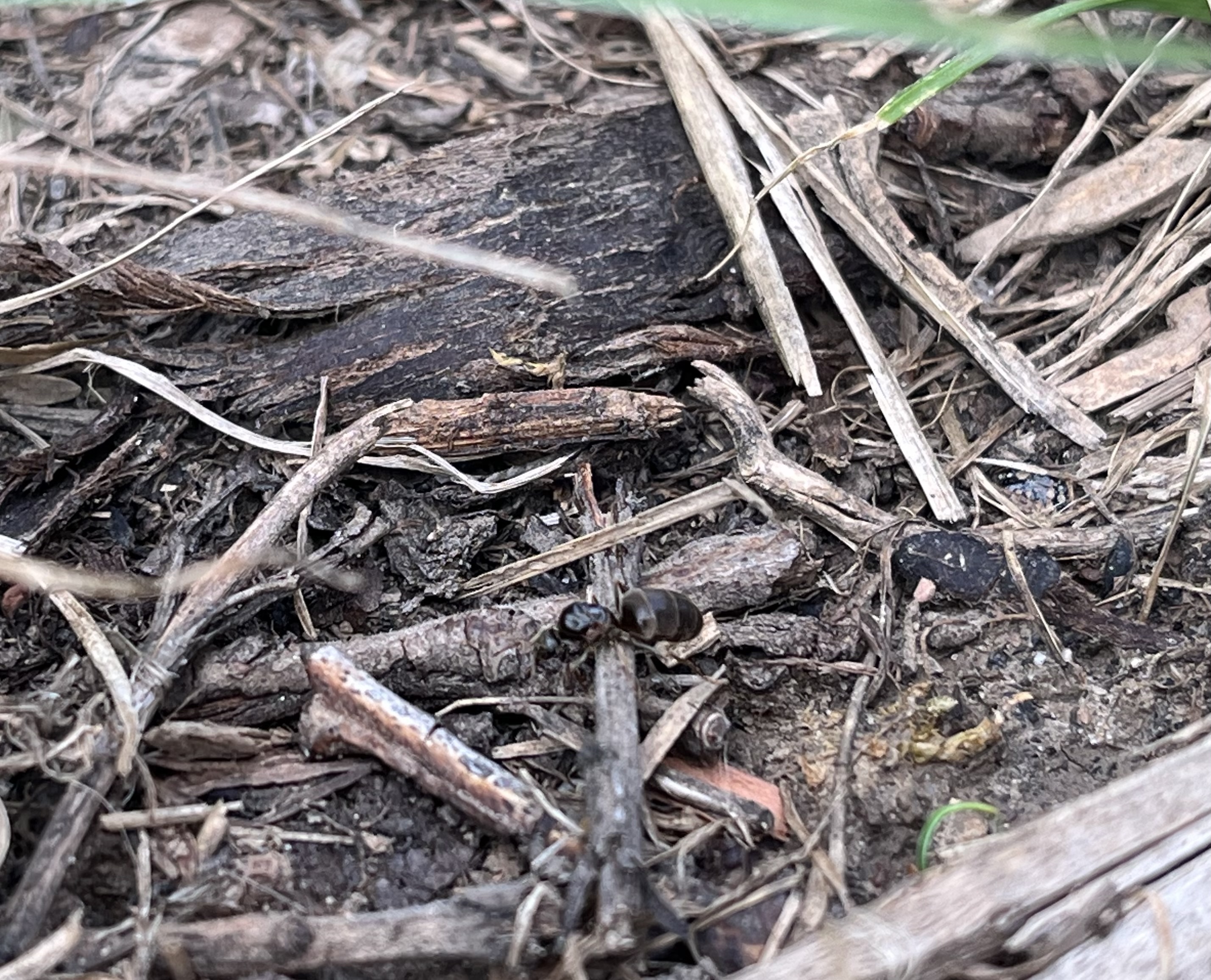 Myrmecia nigriceps (Erstarbeiterin) auf dem Eingang zum Nest