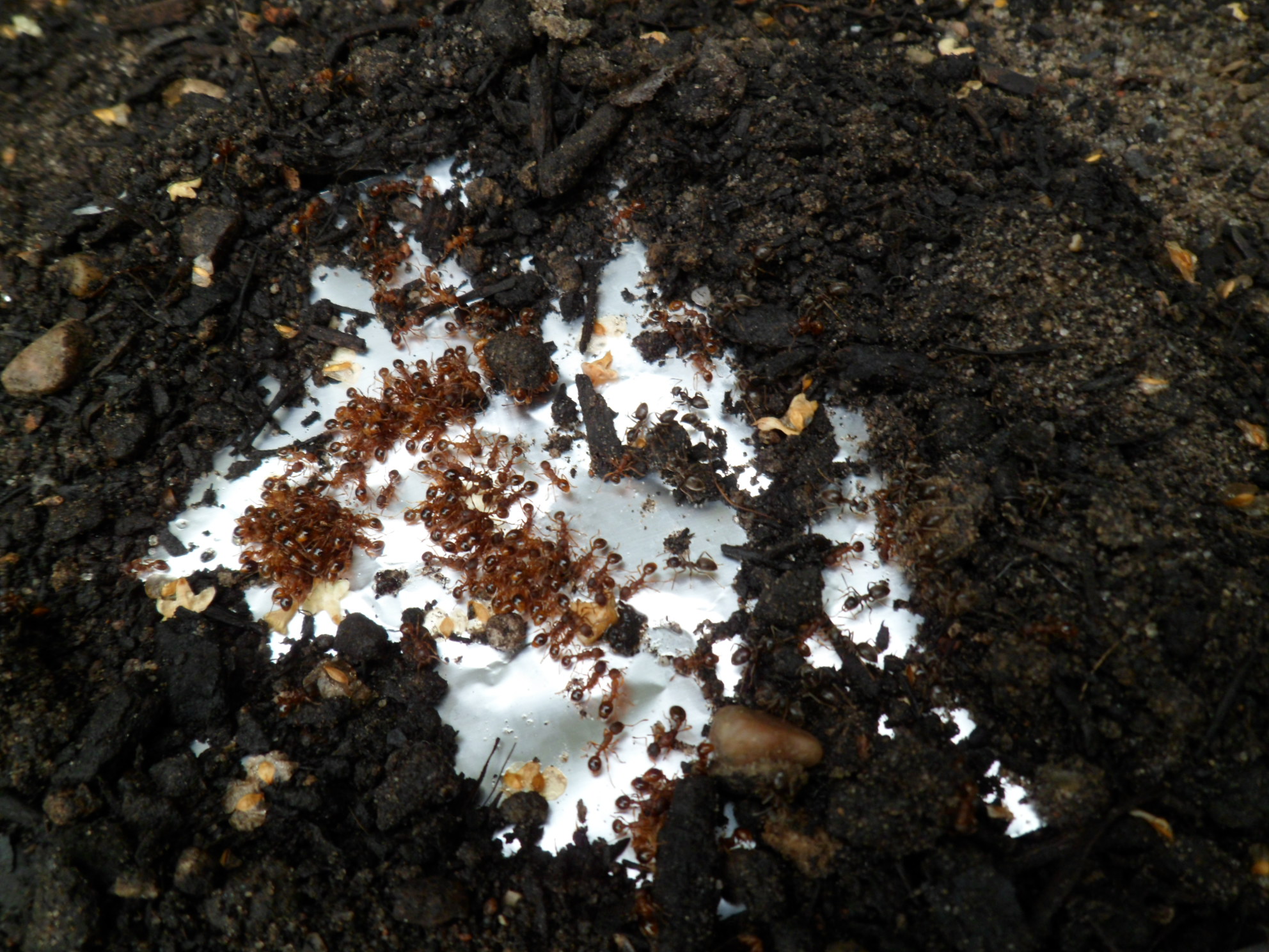 Heute habe ich die Pheidole spathifera Kolonie mit ein paar Kuchenkrümeln gefüttert und die wurden nicht verschmäht.