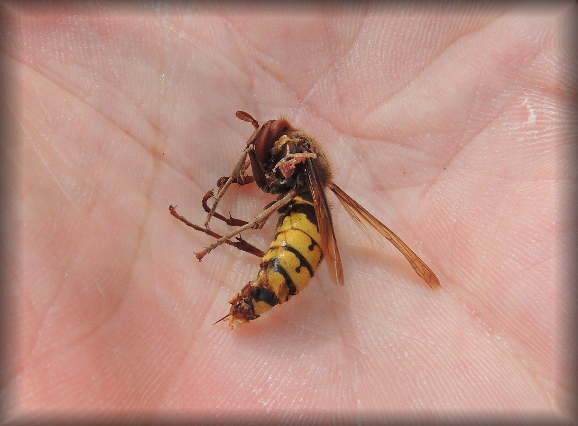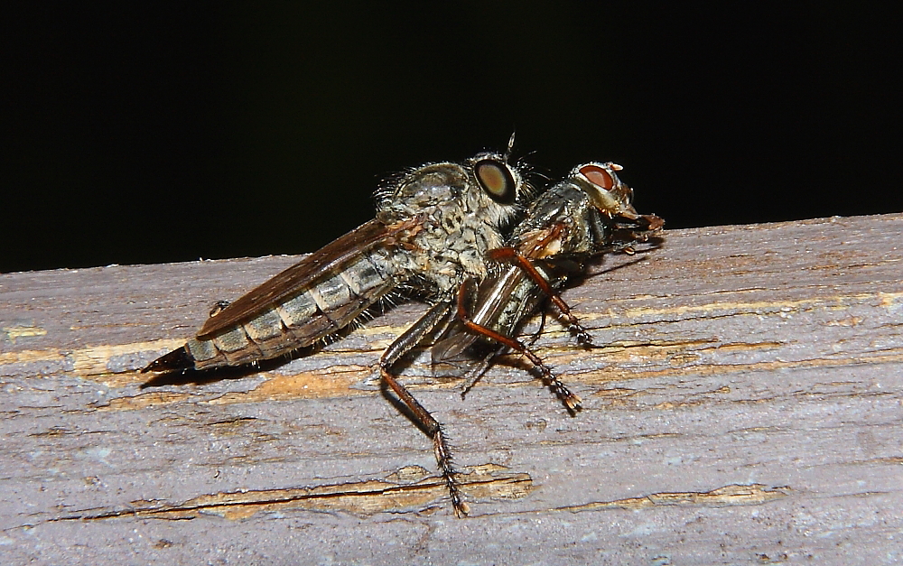 Meine das hier eine Raubfliege Beute gemacht hat.