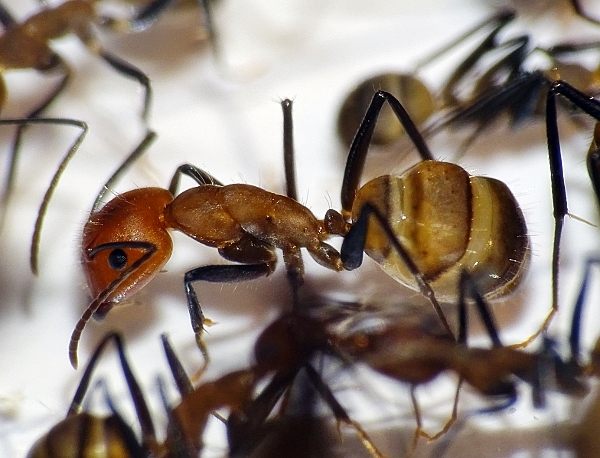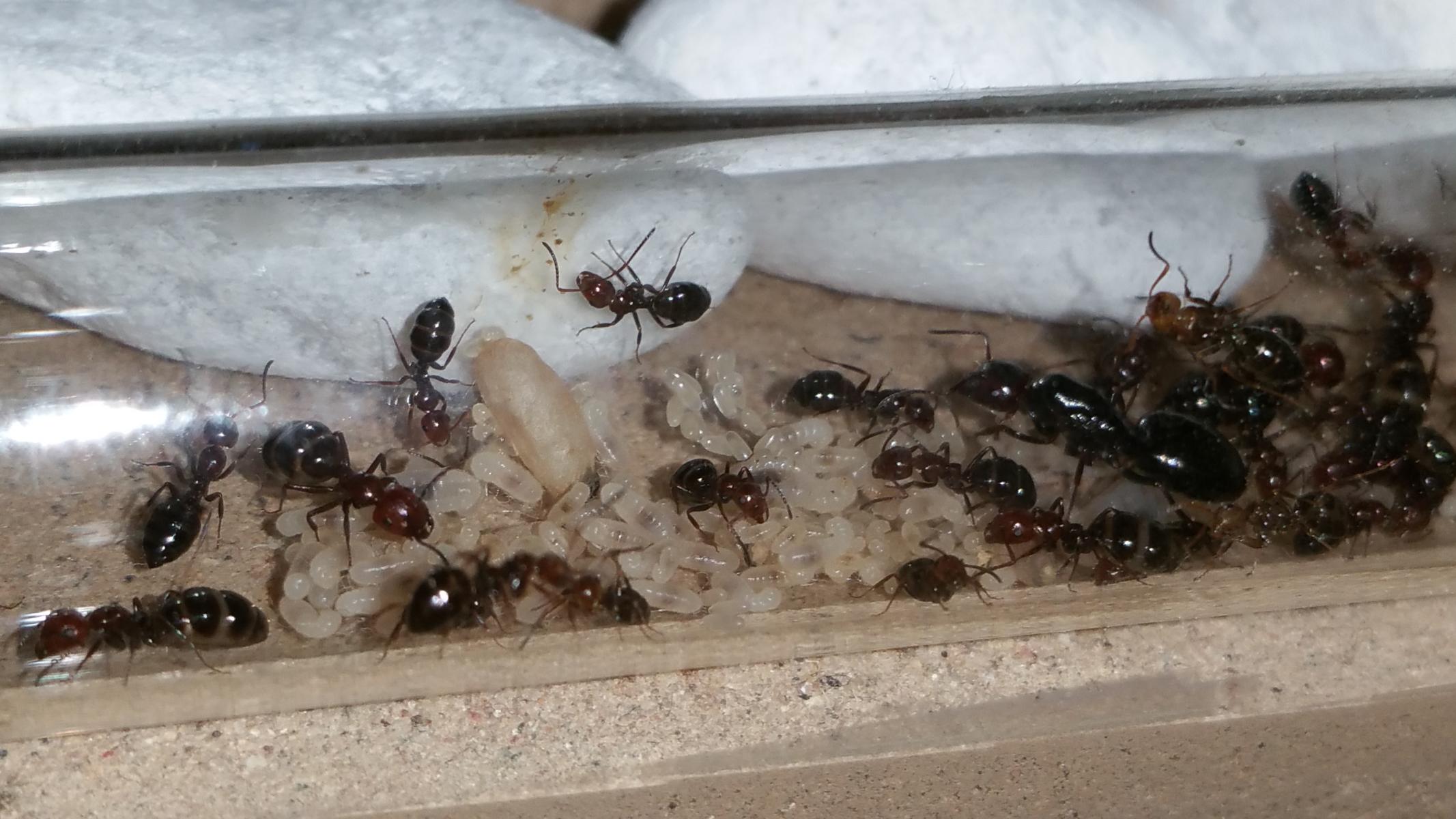 Das sind ein paar von Colophonius´Camponotus substitutus die ich mit Zuckerschrift gefüttert habe. Ich bin ein absoluter Gegner von Tierversuchen, aber hier konnte ich nicht widerstehen.