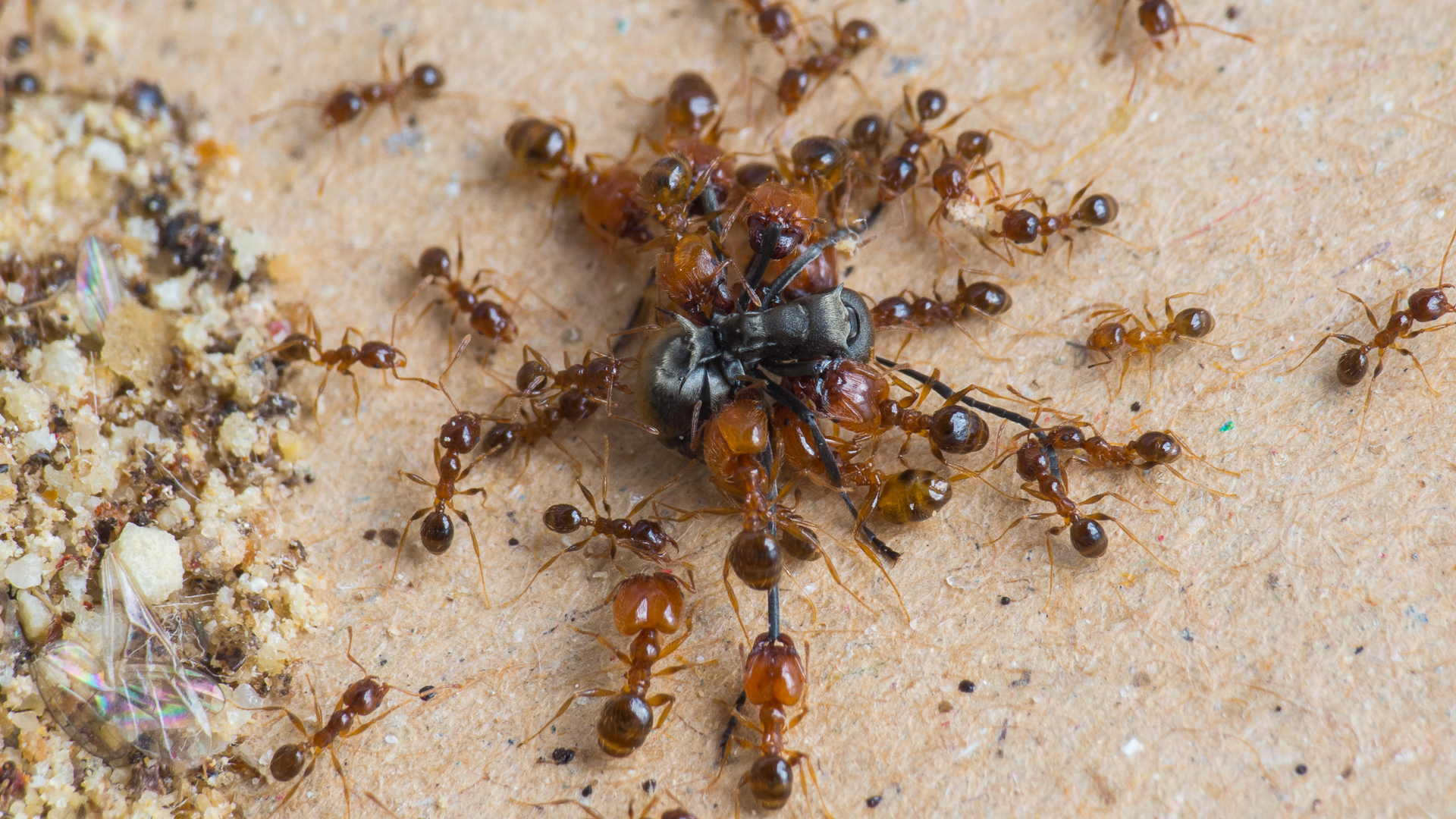 Wie immer unersättlich: Meine Pheidole pallidula Kolonie.
