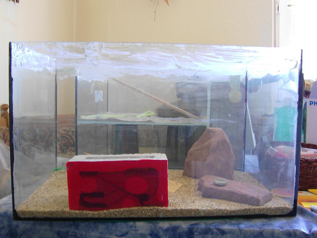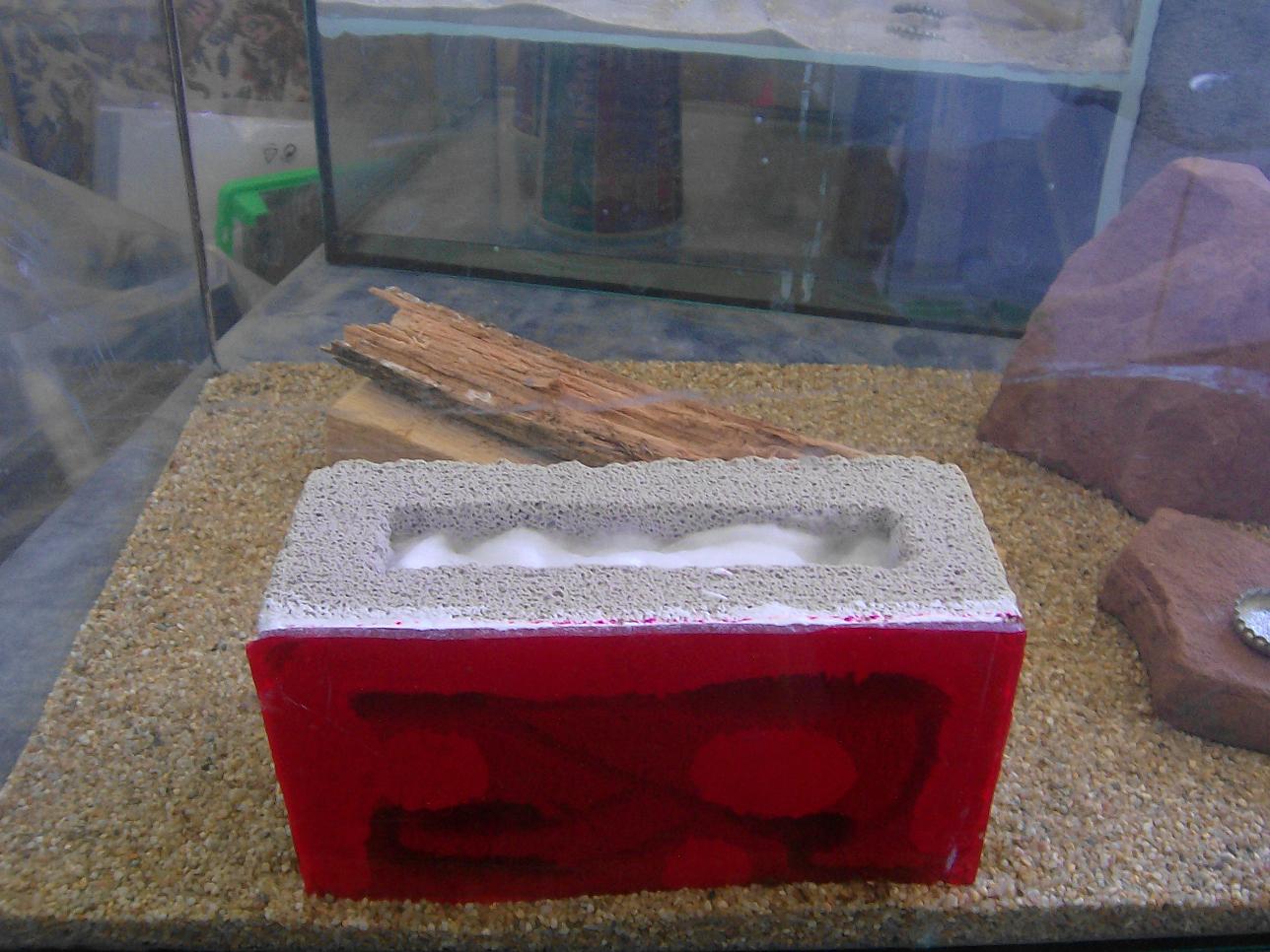 Bild4 und 5: Der Ytong aus einiger entfernung. Die weissen flächen sind silikon mit dem Ich das plexiglass angeklebt habe.