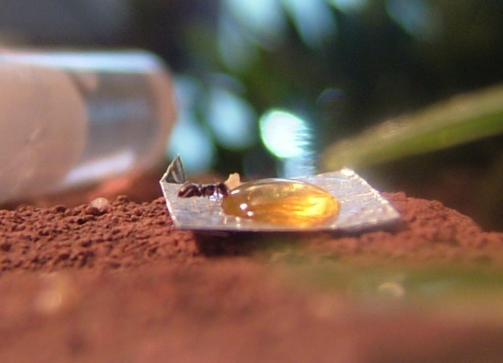 Wanzenart (unbestimmt). Wird trotz Abwehrsekret von meinen Myrmecia erledigt.