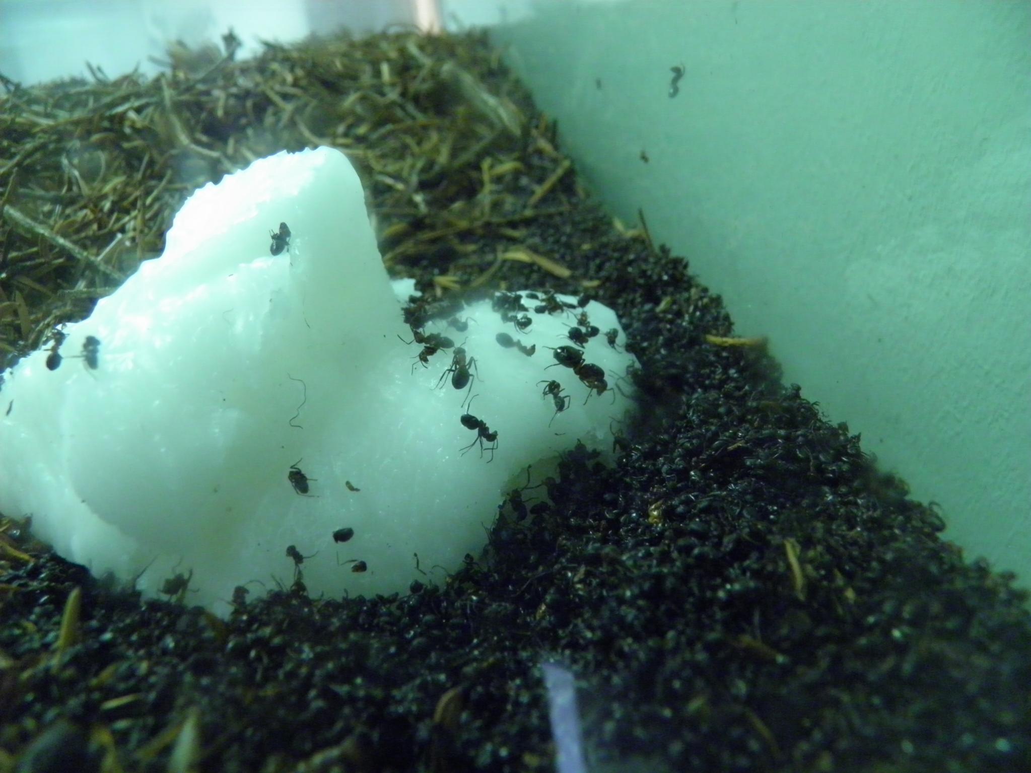 Das weiße Zeug könnte z.B. Apifonda oder ein anderes Bienenfutter sein. Ist für die Pfleger wahrscheinlich einfacher, als mit flüssigem Honig rumzusauen. Ob's für die Ameisen ein adäquates Futter ist, wissen die Spezialisten vielleicht...