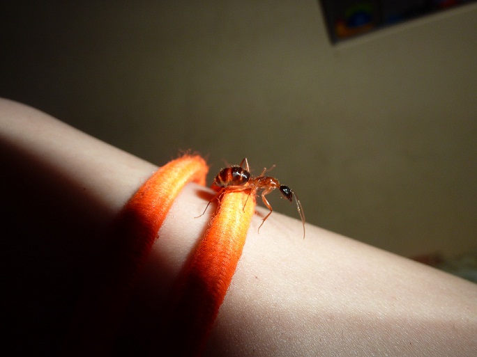Dolichoderus quadripunctatus Arbeiterin auf meinem Knie, 26. 05. 2012, Tengling am Tachinger See, Bayern.