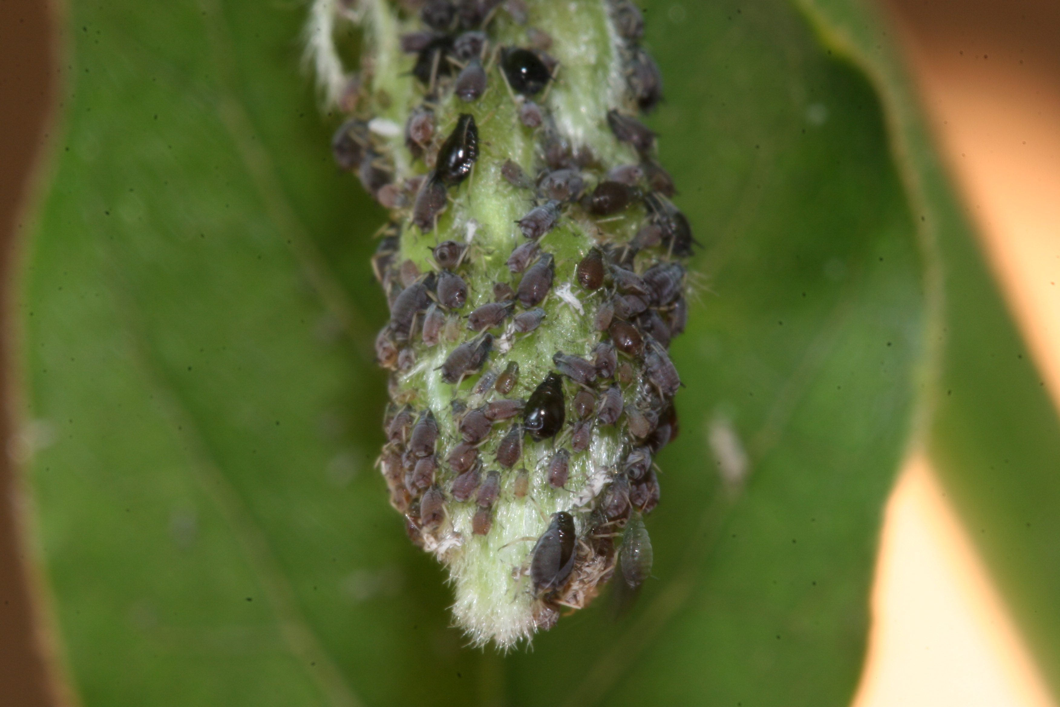 Zu meiner großen Freude entdeckte ich 10.000 Blattläuse auf einer Schlingpflanze, die auf meinen Balkon hochwächst.