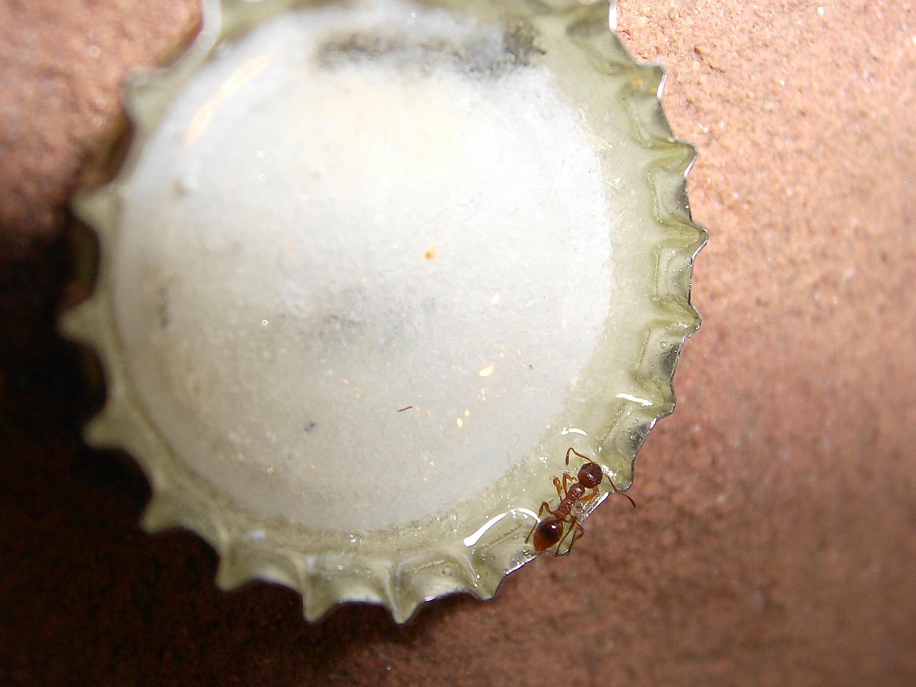 Eine nähere Aufnahme der in der wasserkammer lebenden Ameisen. Wenn mann genau hinschaut sieht mann auch die Herrin. Ich habe eine im Holz gesehen und 2 da drinn also ist die Kolo. Polygen. Ich habe einmal wasser da rein getan und sofort waren die Ameisen da und Ich konnte Nicht nachfüllen um sie da raus zu halten.