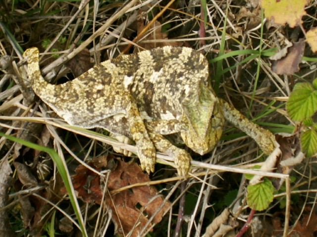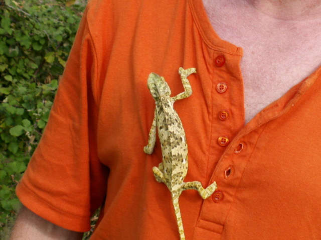 Wirbeltiere gab es ebenfalls in Mengen. Landschildkröten, Eidechsen, Geckos, Skinke, Schlangen, Frösche und Kröten waren allerorten an geeigneten Stellen anzutreffen. Eine Überraschung war ein Chamäleon für uns, wir haben es fotografiert.