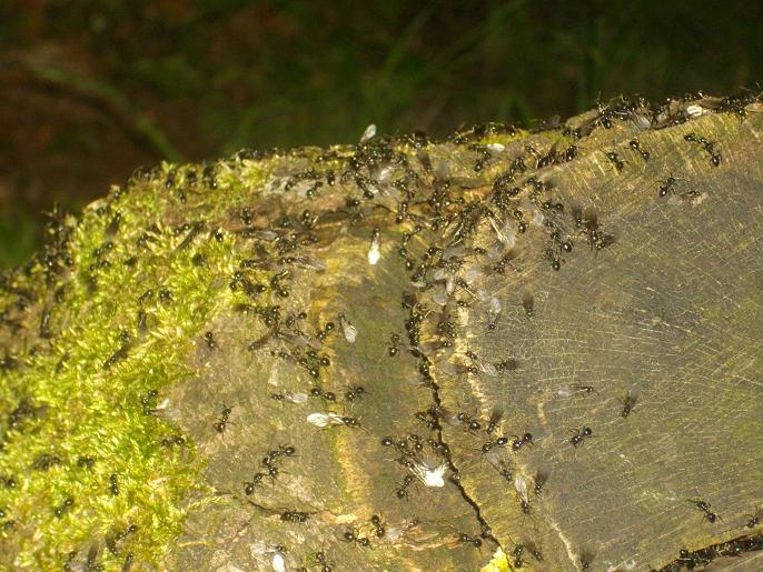 Formica fusca kann man vollkommen ausschlieĂen, die haben noch keine adulten Geschlechtstiere und schwĂ€rmen erst im Juni.