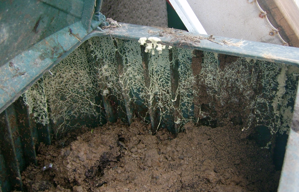 In Kompost tauchen aber auch echte Pilze auf. Aus einer Packung Kompost von der Kompostierungsanlage, die angebrochen in meiner Garage lag, wuchsen plötzlich jede Menge Tintlinge aus. Das weißliche Myzel war mir schon beim Öffnen der Packung aufgefallen.