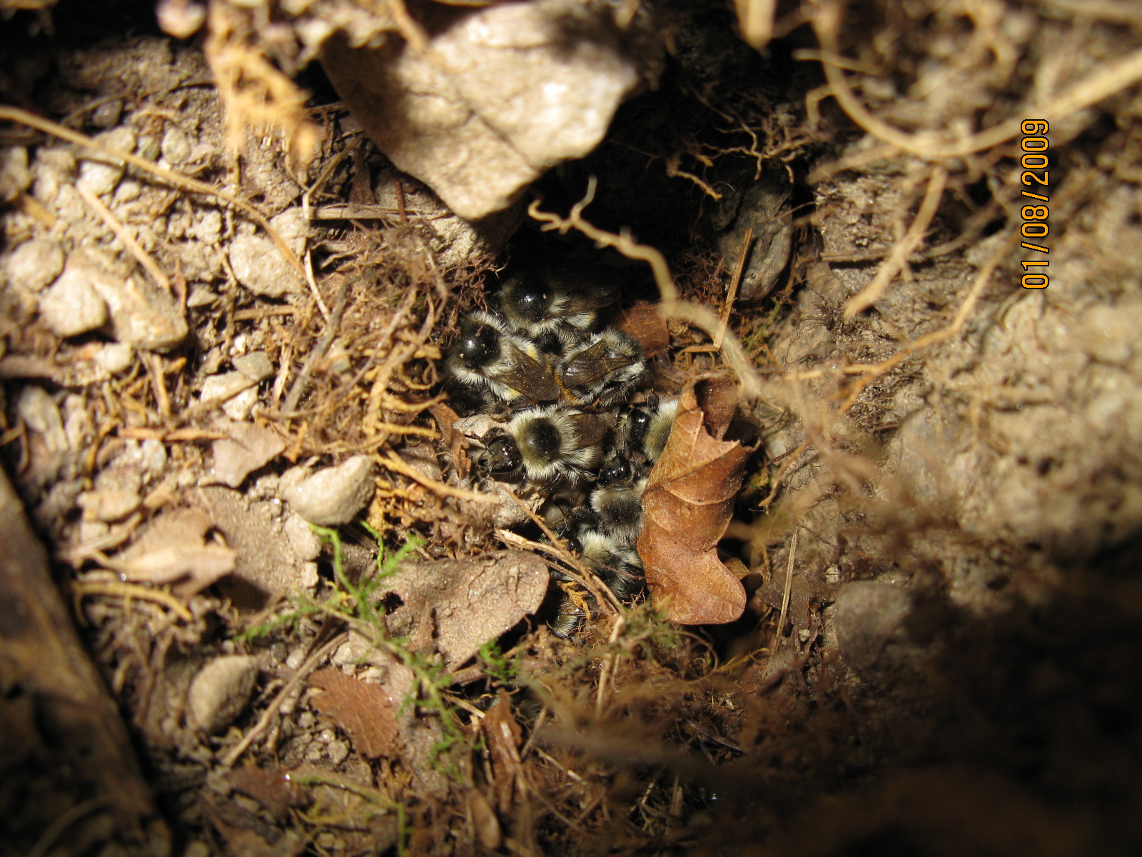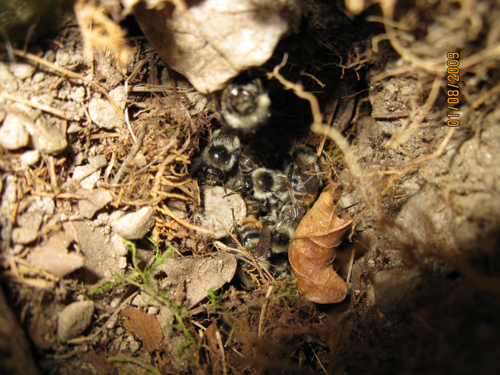 Besondere Freude hatte ich bei einem Nestfund meiner Lieblingshummel, der Bombus sylvarum. Freude machte mir dabei, dass die Art hier vorkam, weniger die Umstände des Nestfundes. Das Nest war nämlich geöffnet und geplündert, wahrscheinlich von einem Wespenbussard, einer wahren Plage für unsere Wespen- und Hummelwelt. Da aber alles schützenswert zu sein scheint, was Federn und einen Krummschnabel hat, muss man diese Verluste wohl hinnehmen. Fotos des offenen Nestes und der hübschen winzigen Hummeln unten…