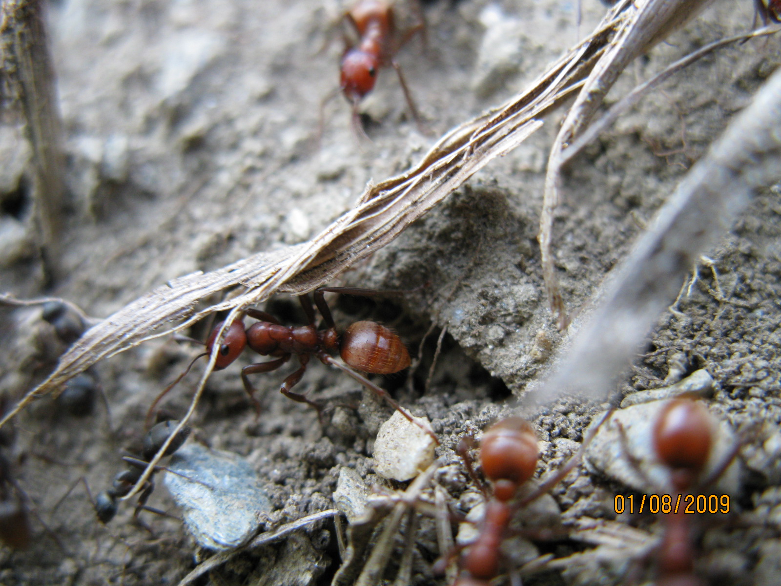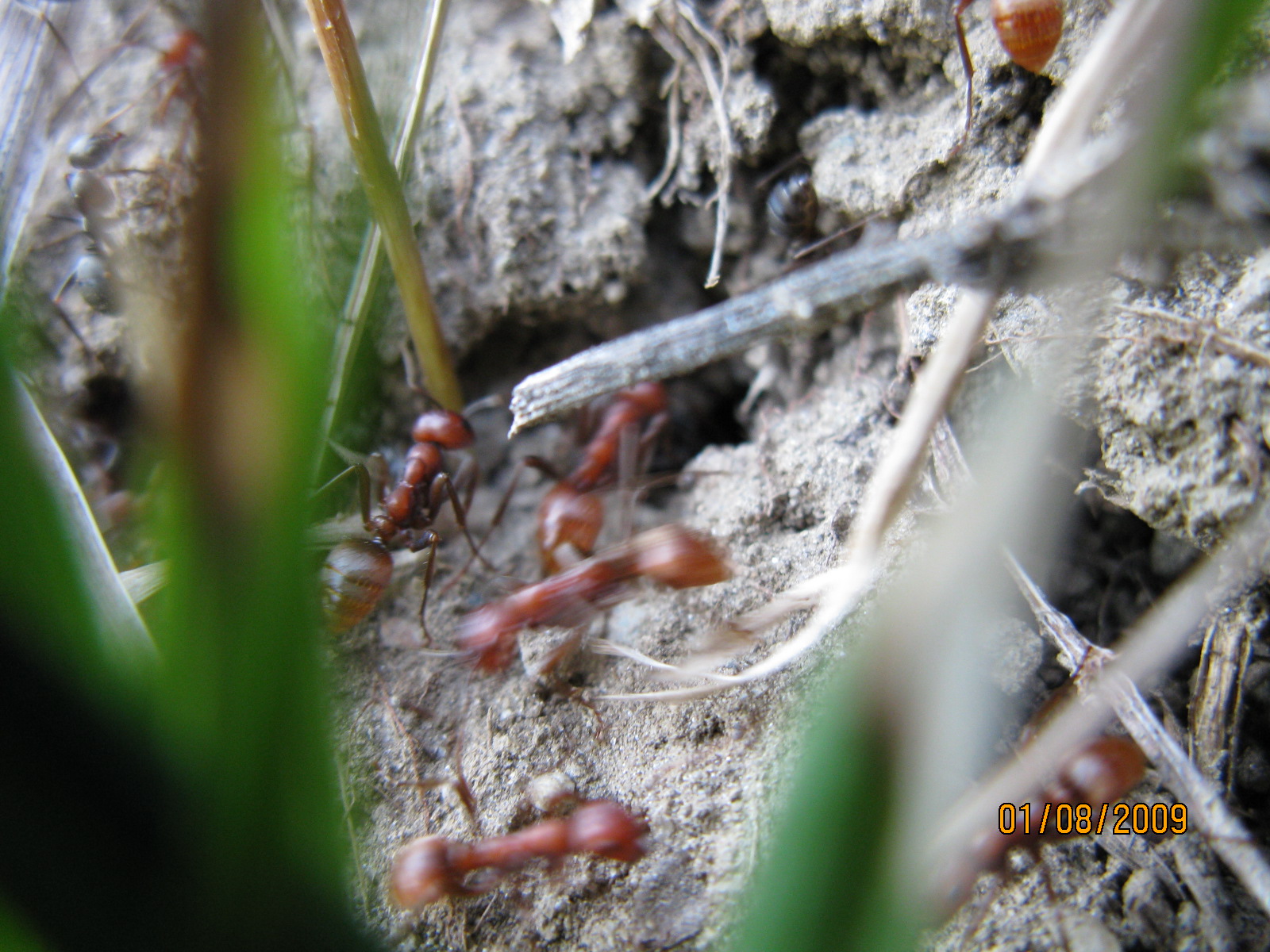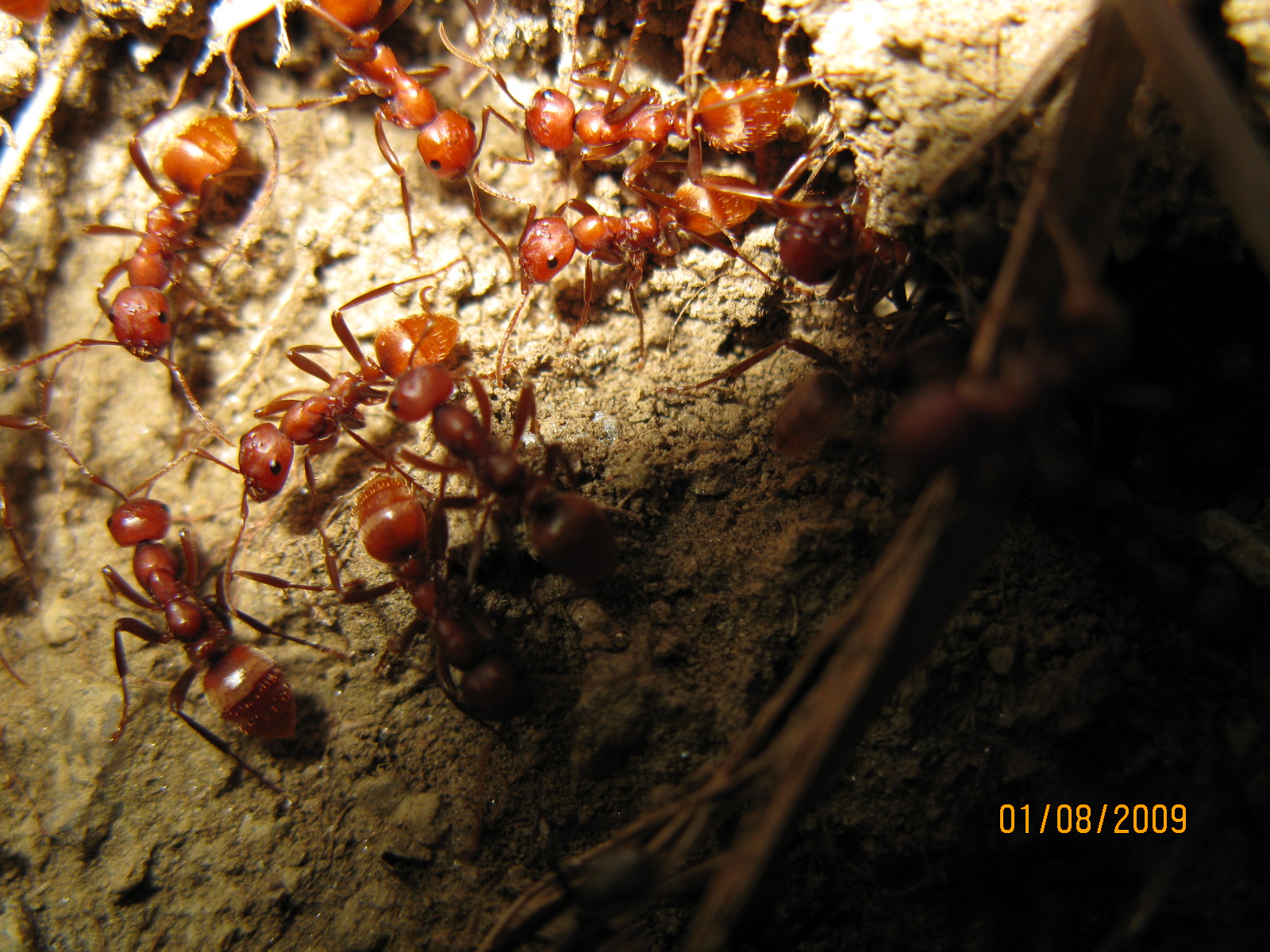 Ich habe versucht, die geschlossen vorrückende Armee zu fotografieren, ausserdem Bilder des Überfalls. Die Amazonen dringen hier gerade in das Nest der Serviformica ein. Einige Serviformica cunicularia bewegen sich zwischen den fremden Kriegerinnen, greifen dies aber wohlweislich nicht an. Die Amazonen beachten die Serviformica kaum, töten sie jedoch, wenn diese versuchen, ernsthafte Gegenwehr zu leisten.