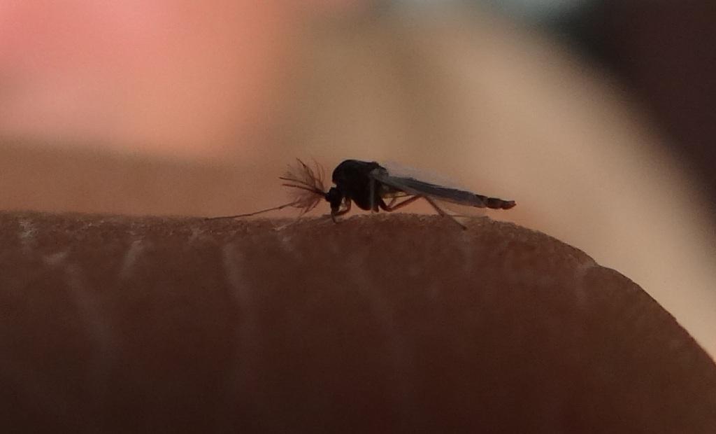 Bild 5: Eine kleine Fliege die auf meinem Finger sitzt und einen kleinen BĂŒschel Haare auf dem Kopf hat:D