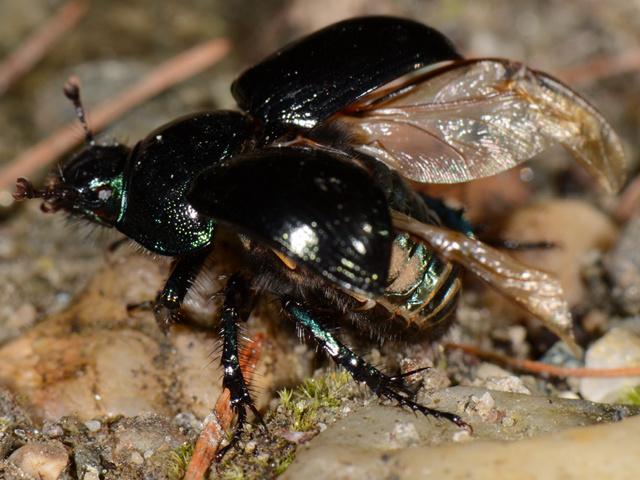 Ameisen waren vorerst keine zu sehen, dafür viele Mistkäfer (vermutlich Anoplotrupes stercorosus). Ziemlich flott die kleinen und dann auch noch abheben!? Hat sichs dann aber doch anders überlegt.