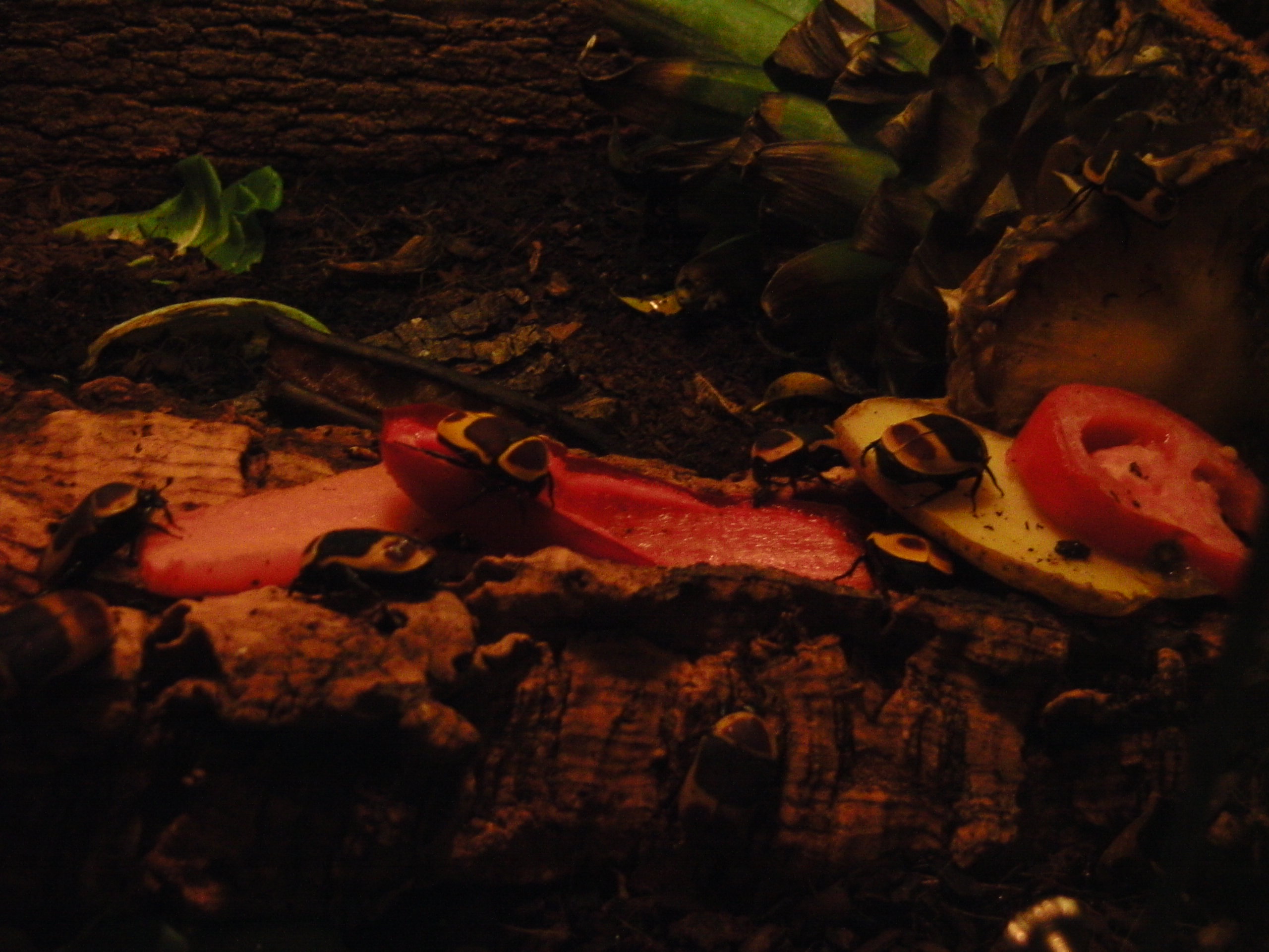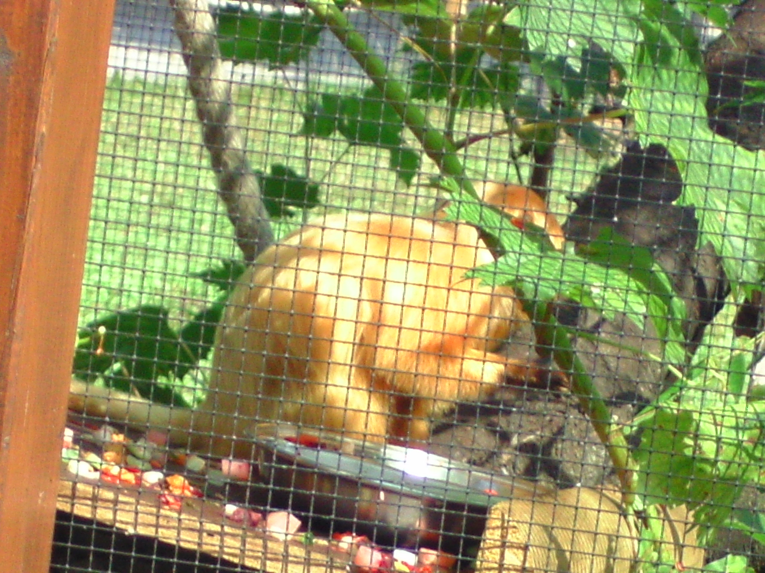 Bild 4: Diese Affen sind mit Farbe markiert. Das liegt daran, dass sie aus einem anderen Gehege kahmen und immer nacheinander eingesetzt wurden. So können die Pfleger die Tiere anfangs besser erkennen.