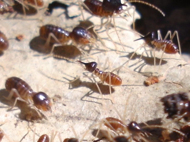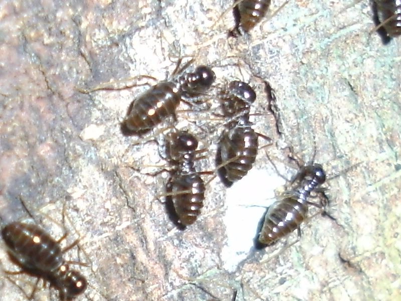 Bei diesen hier wirkten Hinterleib und Kopf fast gĂ€nzlich schwarz bzw. sehr dunkel, wobei das mittlere Körpersegment(kenne die Begrifflichkeiten bei Termiten nicht und drĂŒcke mich mal sehr allgemein aus) leicht rötlich ist. Zudem waren sie nicht annĂ€hernd so klein wie die hellen, bestimmt gute 6-7mm(reine SchĂ€tzung, bitte nicht darauf festlegen).