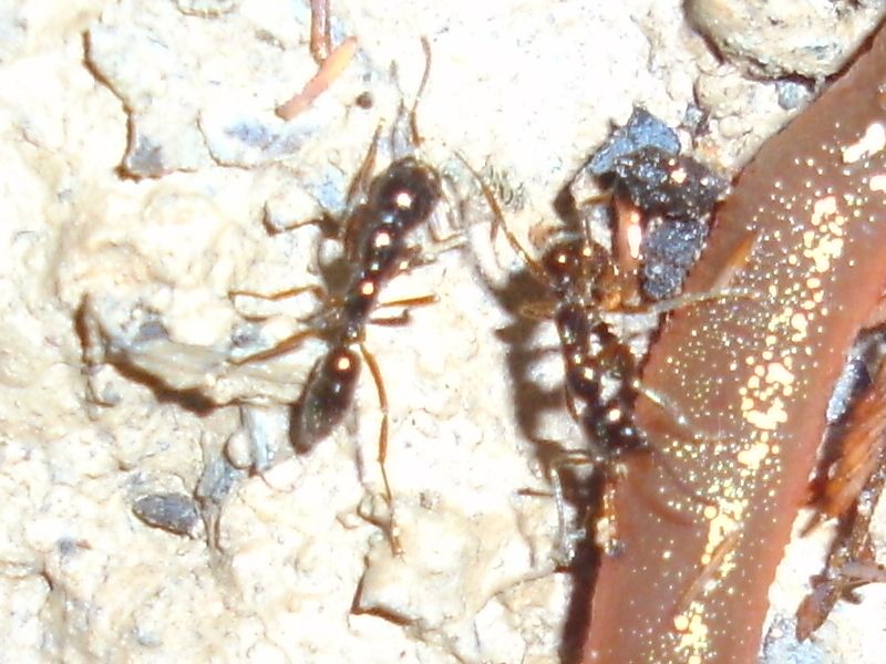 Was die kleine dort gerade aufnimmt ist übrigens mein Schweiß. Lediglich bei dieser und zwei weiterer Polyrhachis spp. konnte ich beobachten, dass sie sich auf meinen Schweiß stürzten als wäre es der reinste Honigtau. Andere Gattungen und Arten waren hingegen überhaupt nicht interessiert.
