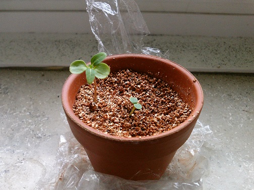 Dieses schöne Stück Natur wächst zwar auf unserer Fensterbank, ist aber doch so besonders, dass ich es Euch nicht vorenthalten wollte: Es handelt sich hierbei um eine landläufig so genannte "Venus Fliegenfalle". Wie man sieht, wächst auch die zunächst zweikeimblättrig heran, und "legt" sich erst später auf den Boden. Ich bin gespannt, wann.