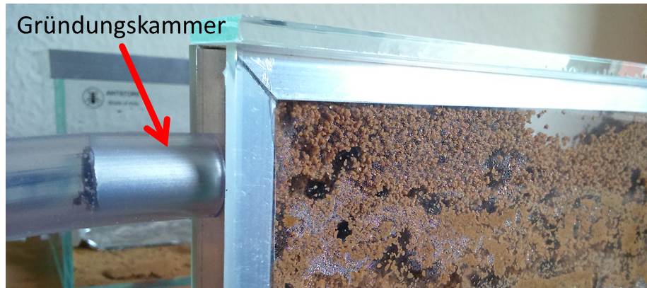Ich habe die Ameisenfarm eher 3/4 also 2/3 mit einer Sand-Mischung befühlt. Da die Mischung zu nah an dem Verbinungsstück zwischen Ameisenfarm und Schlauch war, haben meine Ameisen entschieden das Verbindungsstück als Grünungskammer zu nehmen und daneben die komplette Ameisenfarm bis zum Deckel mit Sand zu verbauen. Ansich kein Problem, wo die Ameisen hausen will ich ihnen überlassen, allerdings kann ich den Deckel der Ameisenfarm jetzt nicht mehr öffnen zur Bewässerung weil erstens jedesmal innerhalb von 2 Sekunden 5 Ameisen aus der Ameisenfarm entlaufen und zweitens ich nicht will, dass eventuell Gänge etc. einstürzen die bis an den Deckel der Farm gebaut sind. Ist also alles relativ doof gelaufen.