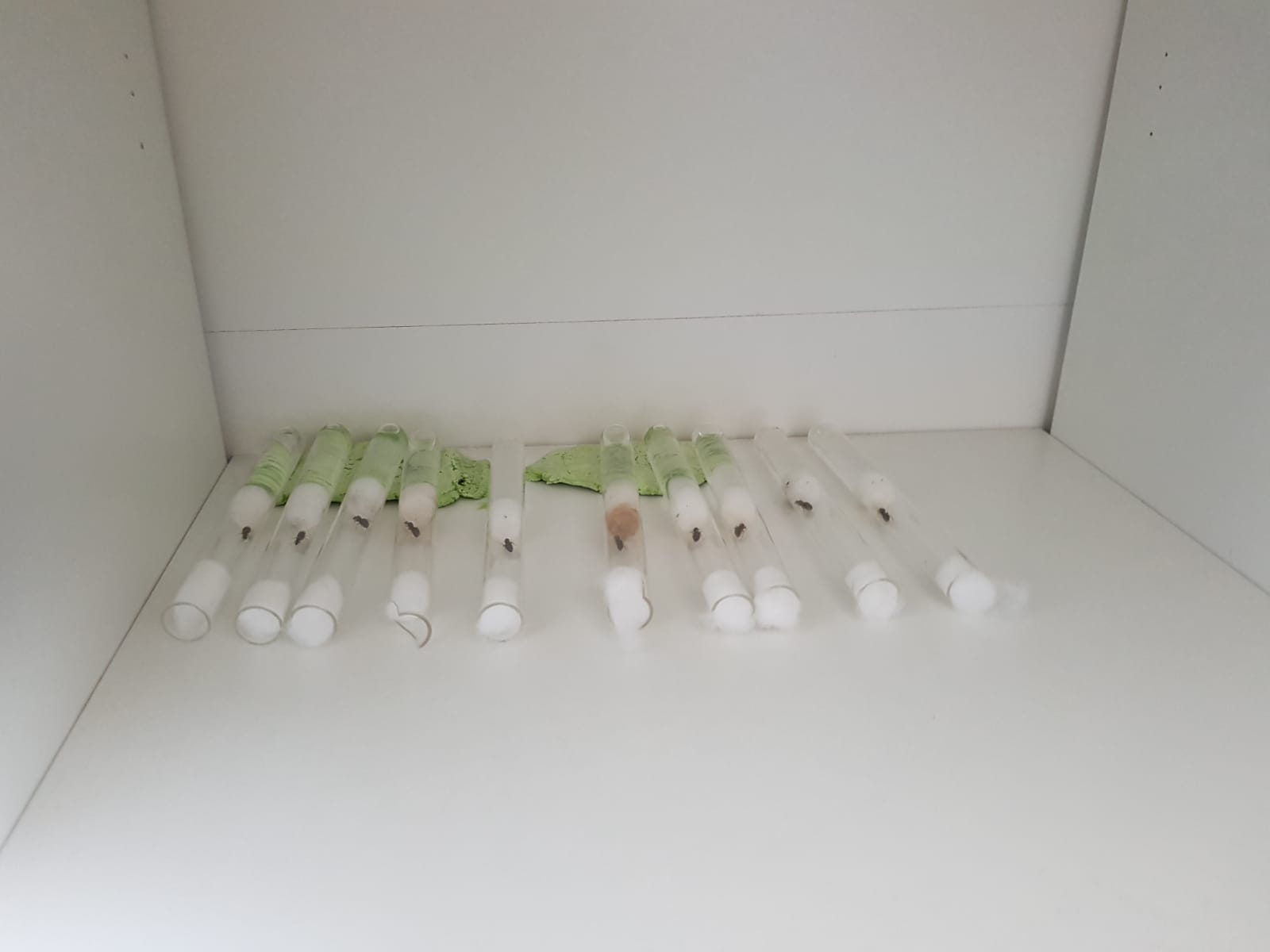 Danke für deine Antwort ! Also alle liegen in Alufolie umwickelt ganz Rechts in meinem Ameisenschrank bei 25-26°C.Habe sie vom Anfang an in Alufolie umwickelt gehabt da ich so gut wie überall gelesen habe das sie sehr Stress empfindlich sind und ich so wenig Licht Einstrahlung wie möglich haben wollte.Ich hoffe ich habe keine wichtigen angaben vergessen die helfen könnten.Mit freundlichen grüßen!