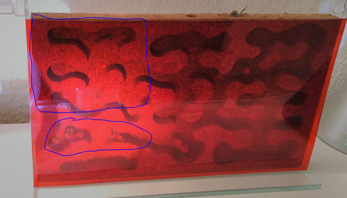 Ich vermute, du fragst wegen der Luftfeuchtigkeit. Die war dann bestimmt nicht mehr all zu hoch. Ich hab nur einmal ein paar Tropfen Wasser reingegeben. Da sie sich gut entwickelt haben, habe ich die LF nicht weiter beachtet. Die Bevölkerung ist trotzdem explodiert