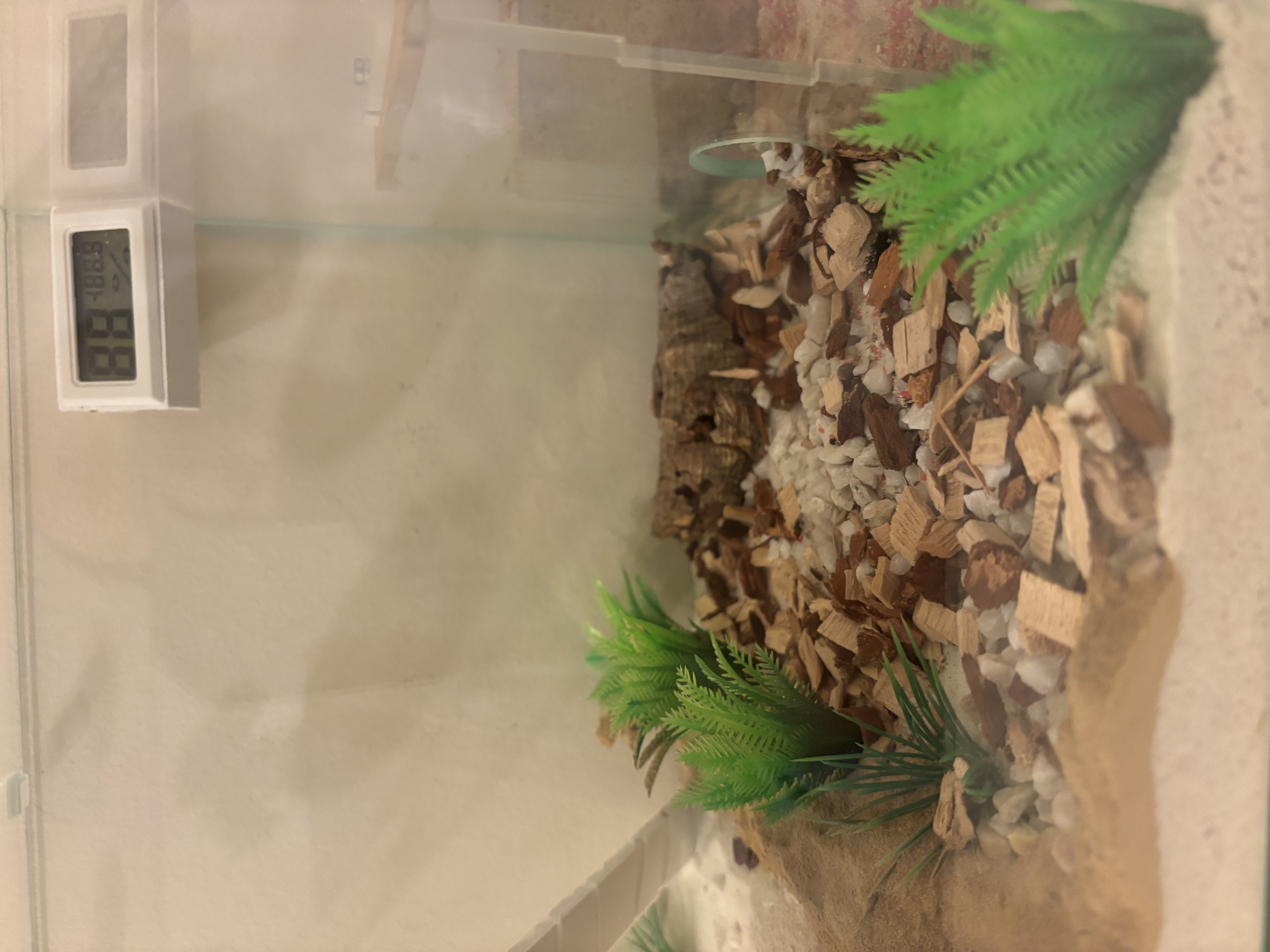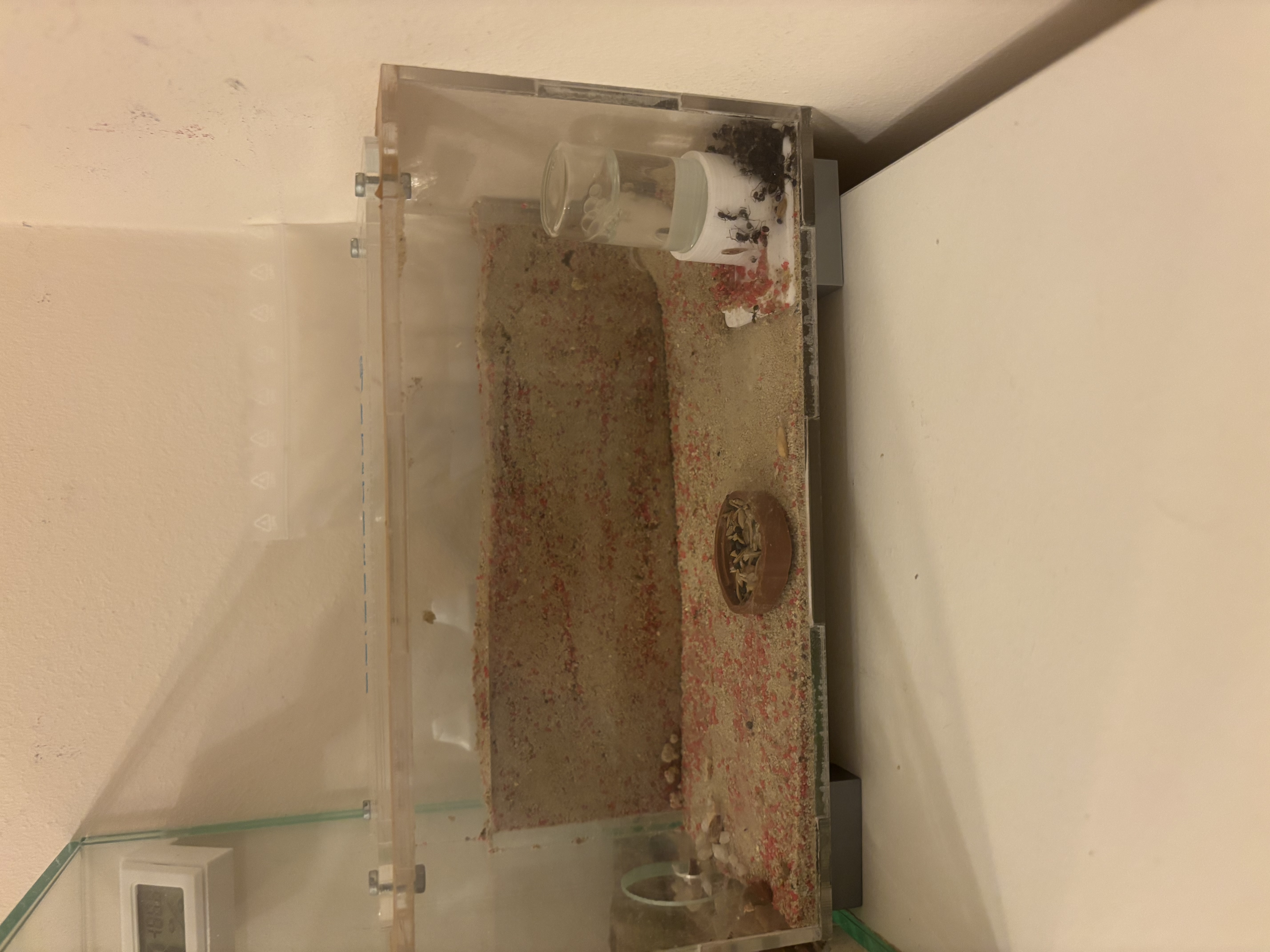Danke fĂŒr deine Antwort . Ihr Nest ist eigentlich unter dem Holzstamm der hohl ist . Die kleine Arena ist nur als Futter Arena gedacht sie haben ja die große in der Sie wohnen. Die Zwischenwand ist nur mit Sand befĂŒhlt wegen der Optik wird aber nicht bewohnt. Die Arena in der ihr Nest ist ist beheizt bei aktuell 22,5 Lufttemperatur und 52% Luftfeuchtigkeit. Die Futterarena ist unbeheizt .
