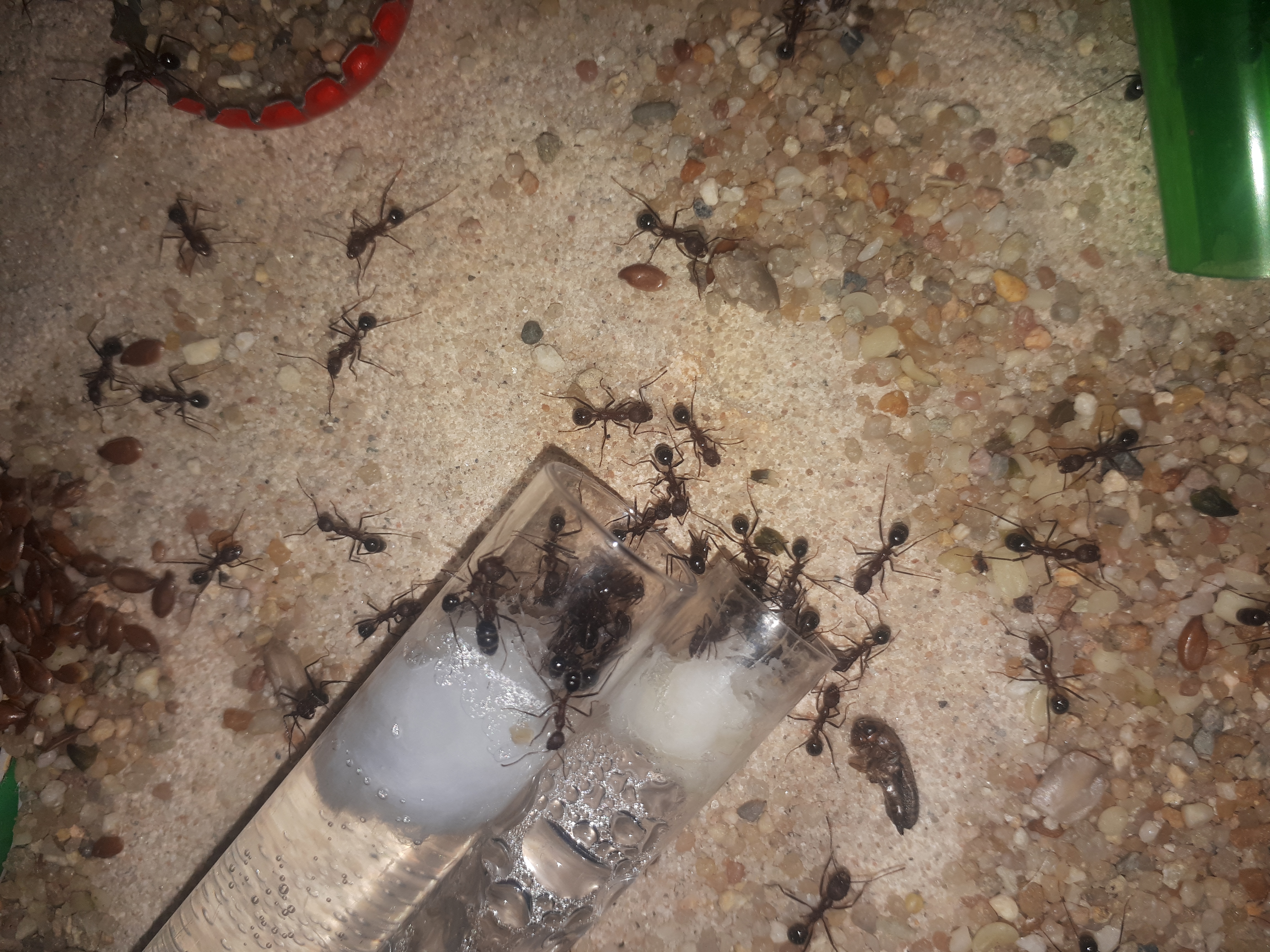 Messor sind nicht die besten Kletterer und im Schlauch tun sie sich, gerade mit entsprechender Beute im Schlepptau, etwas schwer wenn es nach oben geht.sie bekommen die Körner nicht hoch, habe den Winkel etwas verkleinert ohne Erfolg