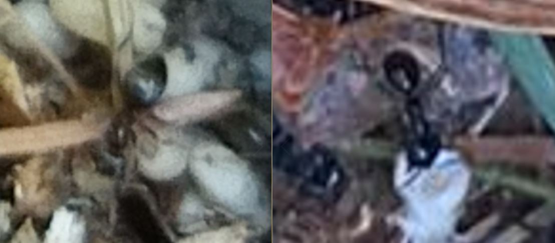 Ich habe mal einen Bildvergleich gemacht (siehe unten) und bin mir, trotz meiner limitierten Erfahrung, ziemlich sicher, dass du heute Morgen Formicasp . gefunden hast und heute Abend eine Kolonie Lasius cf. fuliginosus entdeckt hast.