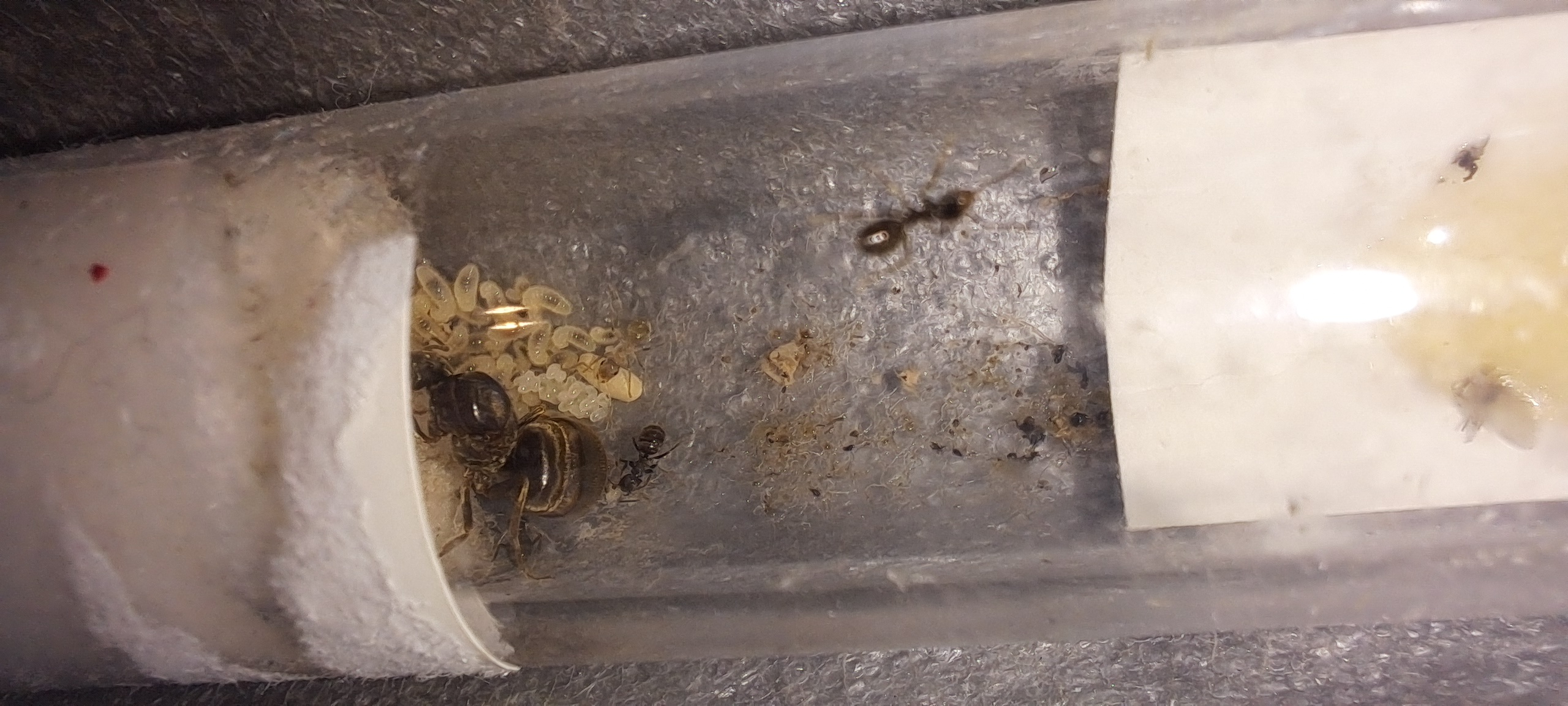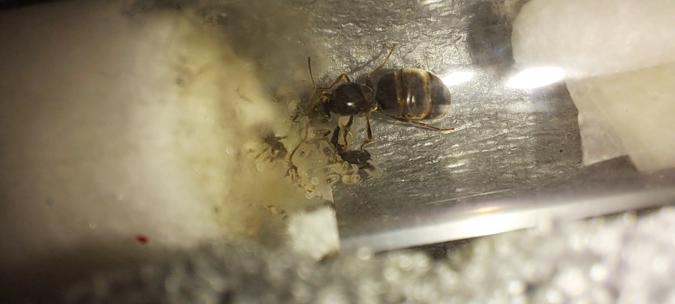 Umso schöner war die Ăberraschung das offenbar in den letzten 72 Stunden insgesamt 2 Ameisen geschlĂŒpft sind und sich somit die Anzahl der Arbeiter verdoppelt hat.