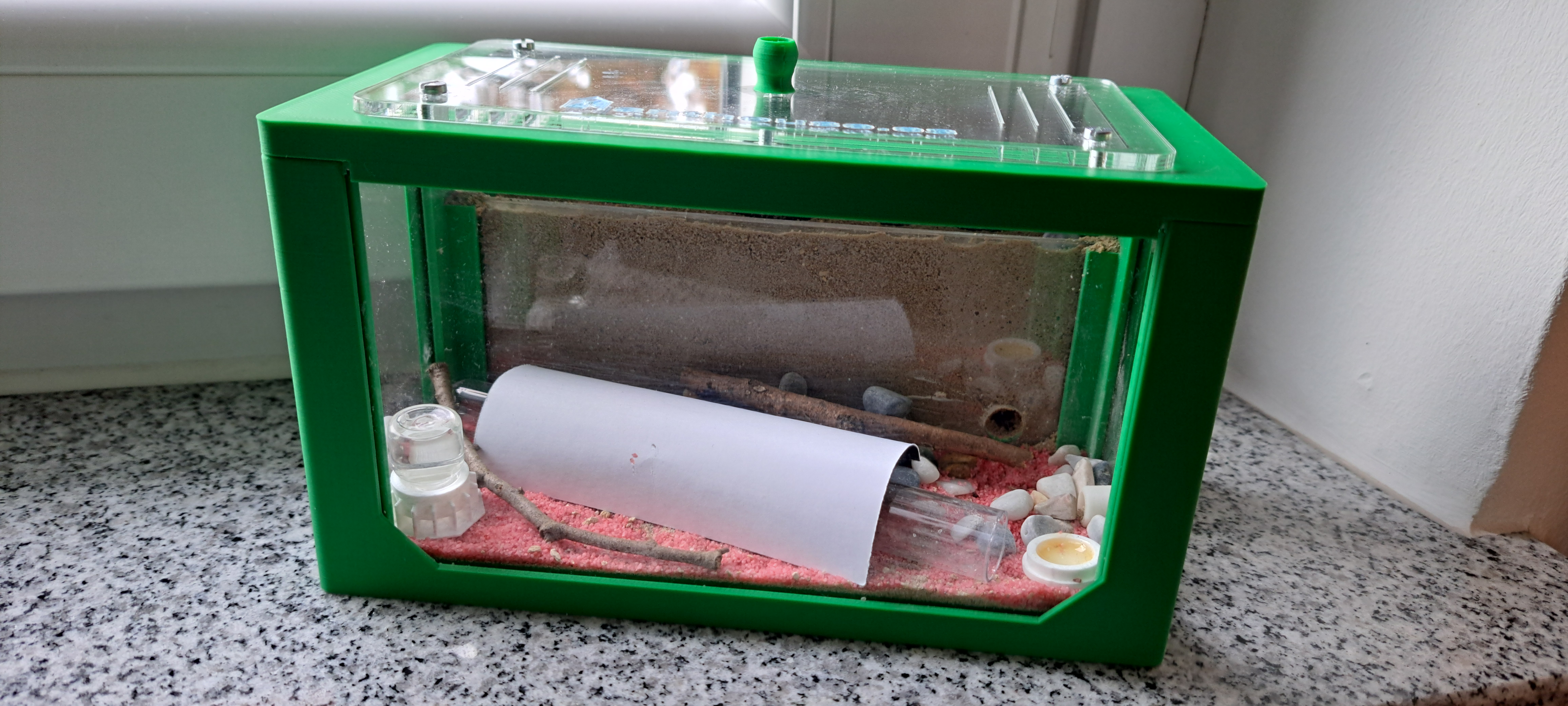 Zudem befinden sich im Anhang Bilder der Farm. Ich bin mir der Tatsache bewusst das die Farm nicht perfekt ist, aber ein Spagat zwischen FunktionalitĂ€t und Kindergerecht sein sollte. Ich wĂŒrde jetzt (beim Umzug, wann auch immer) den Bereich fĂŒr das Nest feucht halten, zudem die WassertrĂ€nke fĂŒllen. Futter ist selbstverstĂ€ndlich.