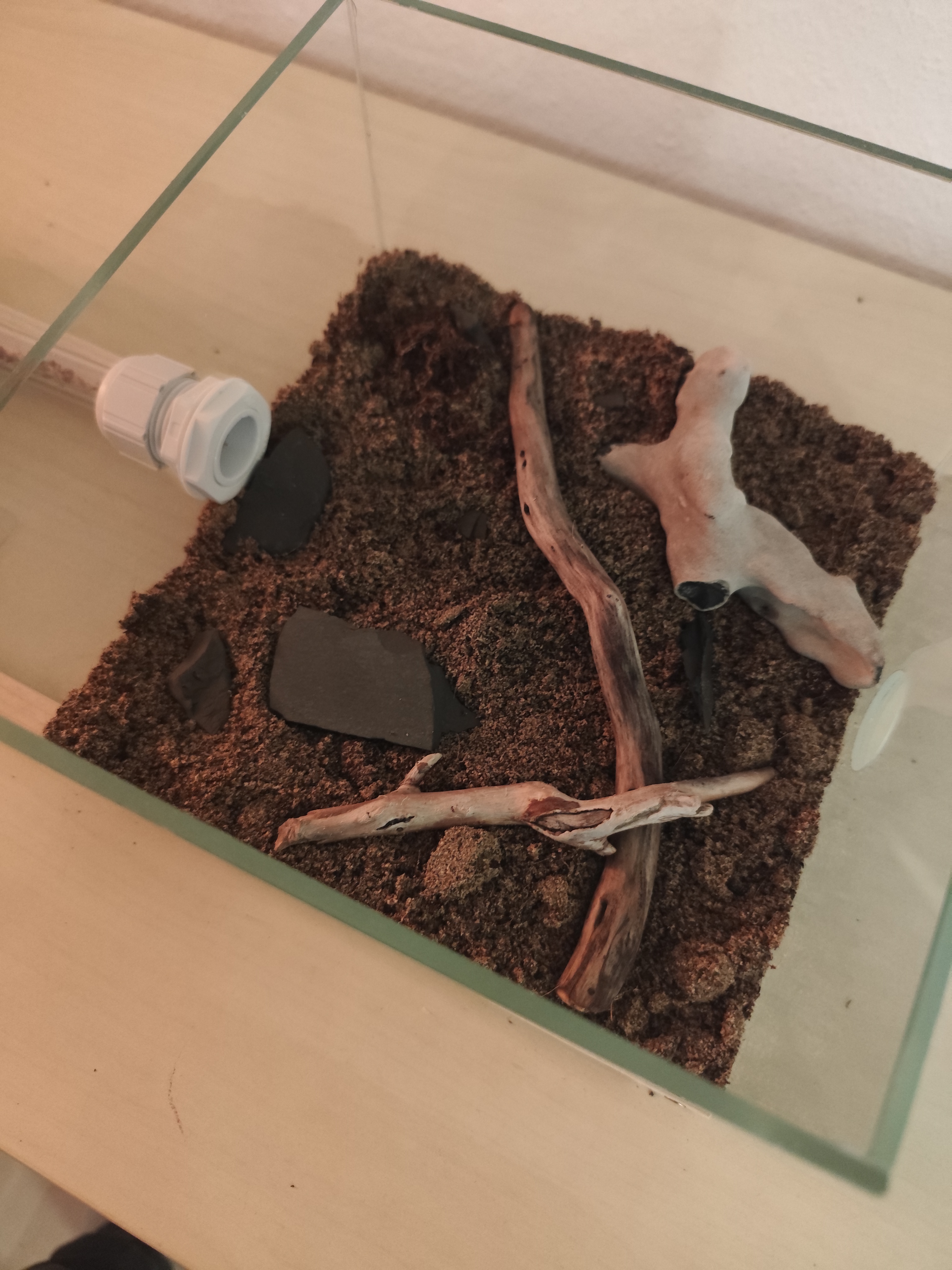 So sieht es jetzt aus. Altes Substrat ist ausgetauscht und alle wieder verwendeten Gegenstände sowie die komplette Arena wurden mit heißem Wasser abgewaschen.
