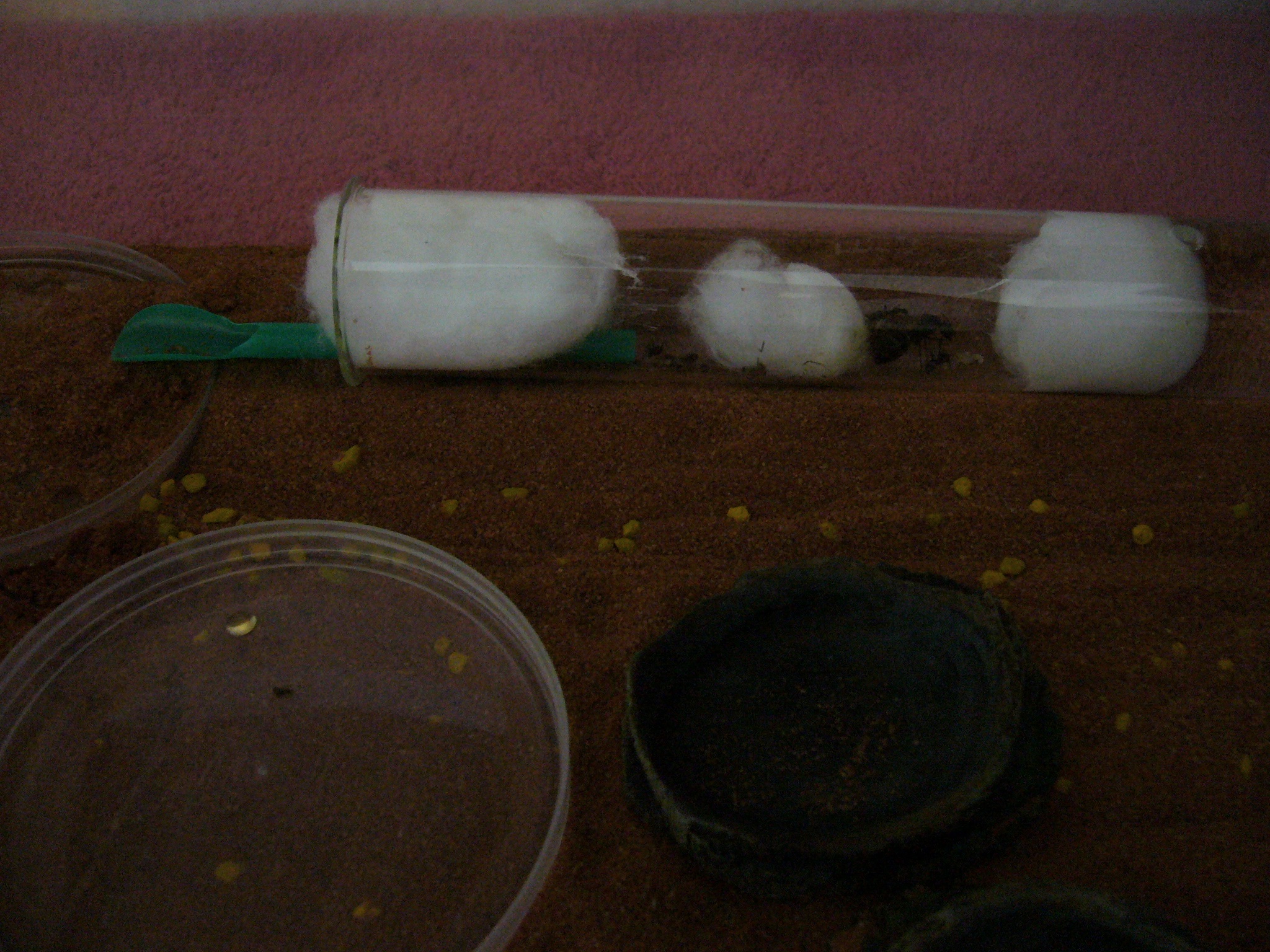 Die hat auch den Vorteil, dass man wenn die ersten Arbeiterinnen da sind einfach einen Strohhalm durchstecken und das Futter in der Arena platzieren kann. Das erspart den Ameisen eine Menge Stress und verlÀngert zudem die Lebensdauer des Wassertanks (weil weniger Verdunstung).